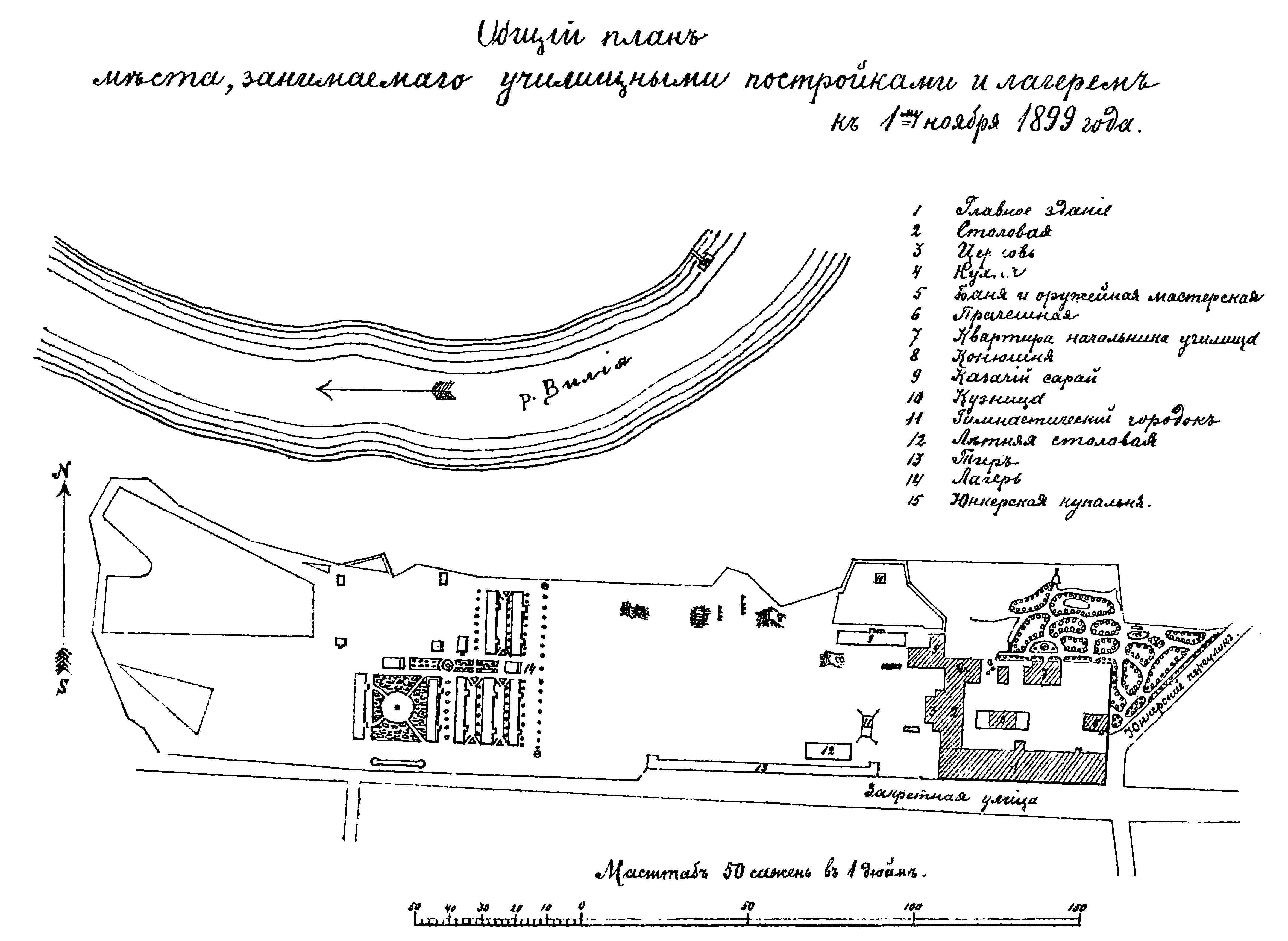 Общий план места, занимаемого училищными постройками и лагерем к 1 ноября 1899 года