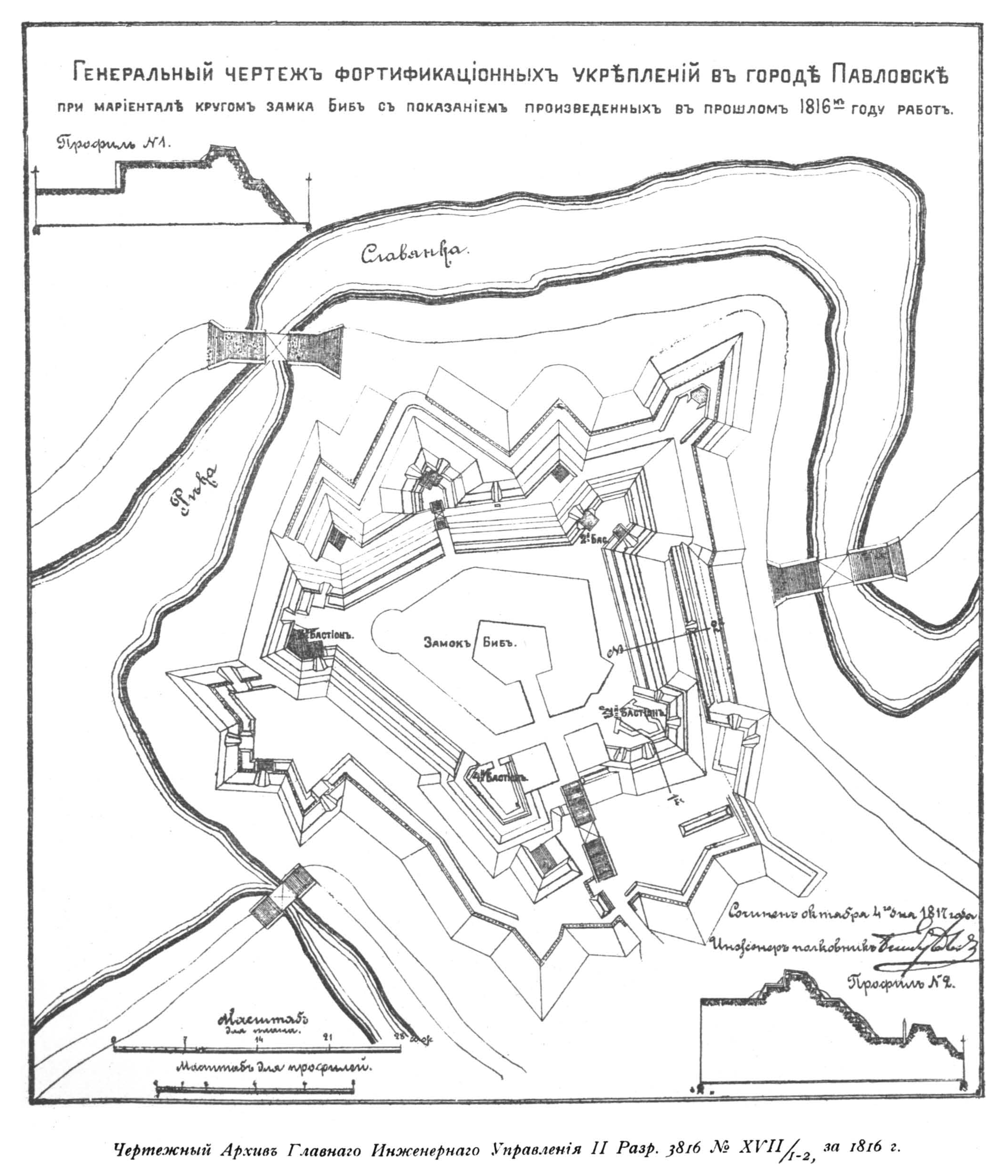Фортификационные укрепления в городе Павловске с показанием произведенных в прошлом 1816 году работ