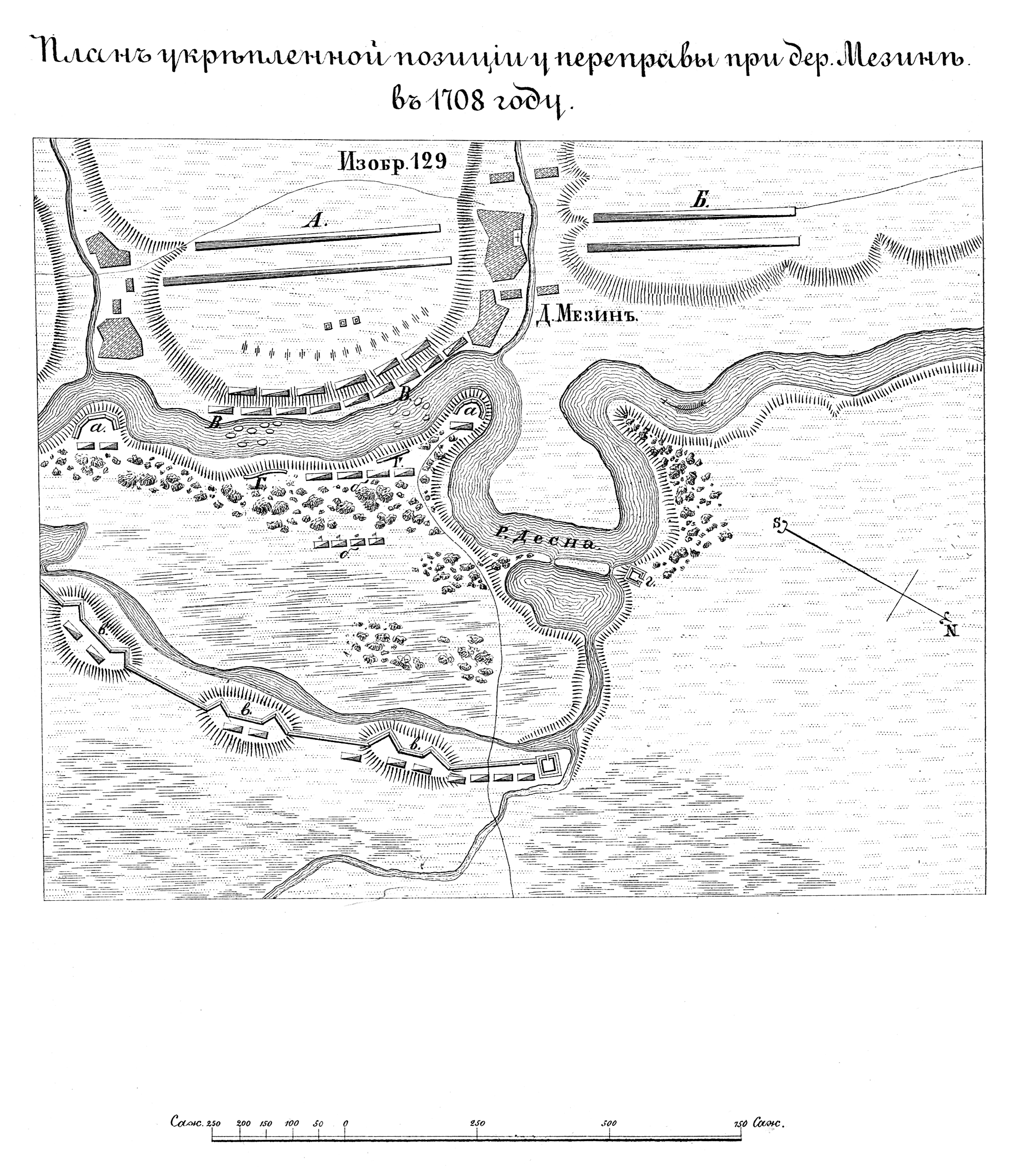 Укрепленная позиция переправы при деревне Мезине в 1708 году