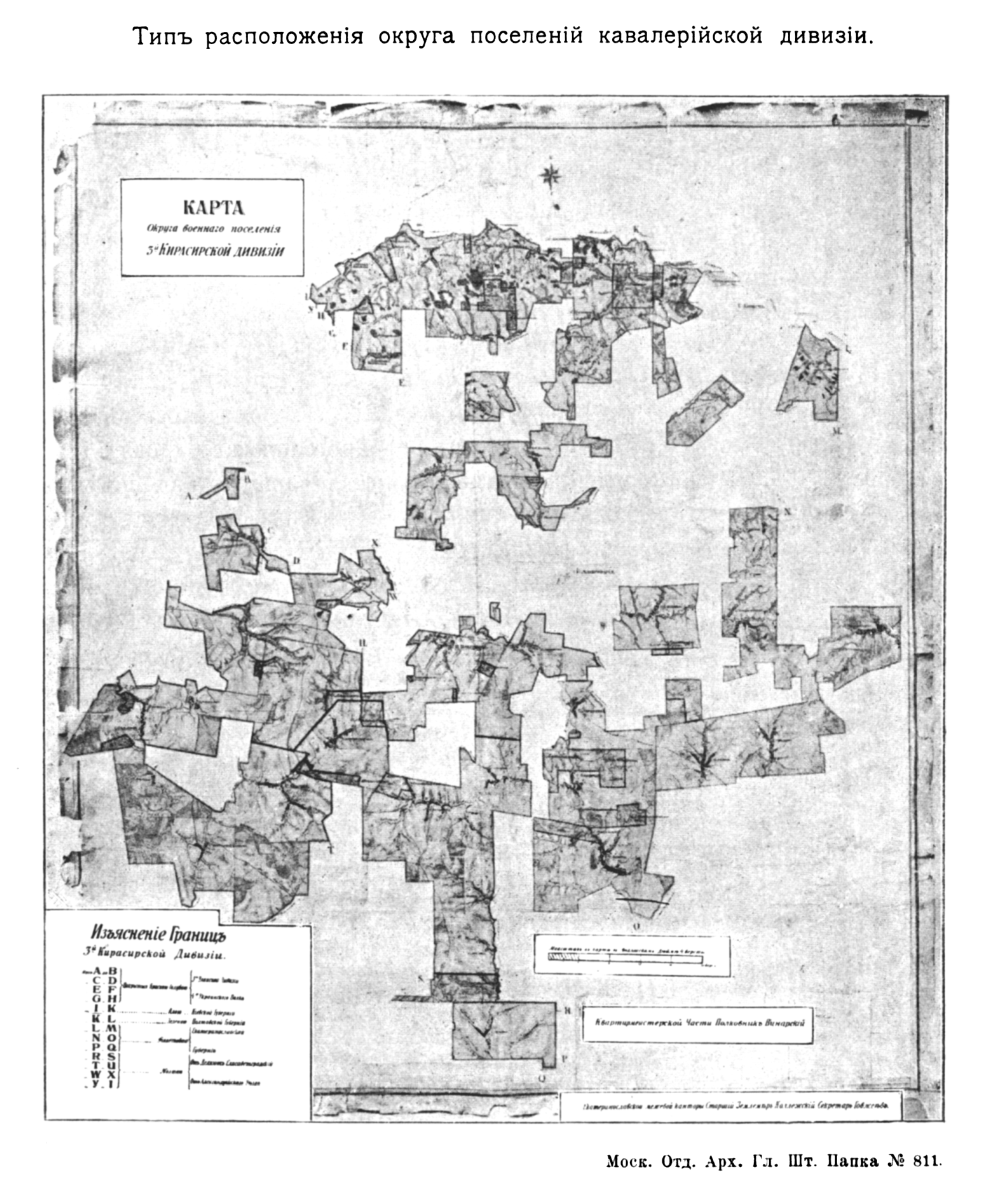 Тип расположения округа поселений кавалерийской дивизии. Карта округа военного поселения Третьей Кирасирской дивизии