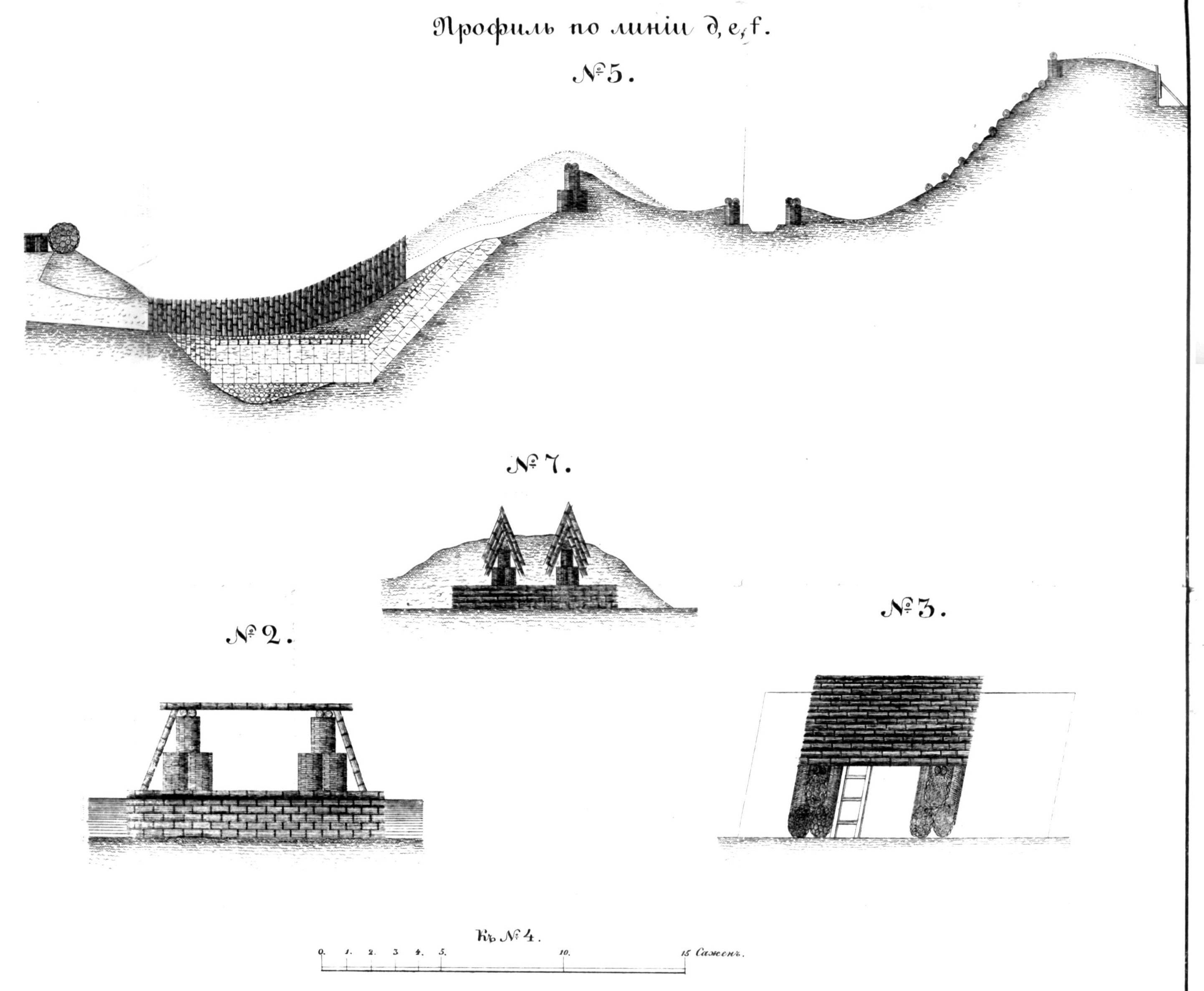 Крепость Варна. Профиль по линии d, e, f. №5, №7, №2. №3