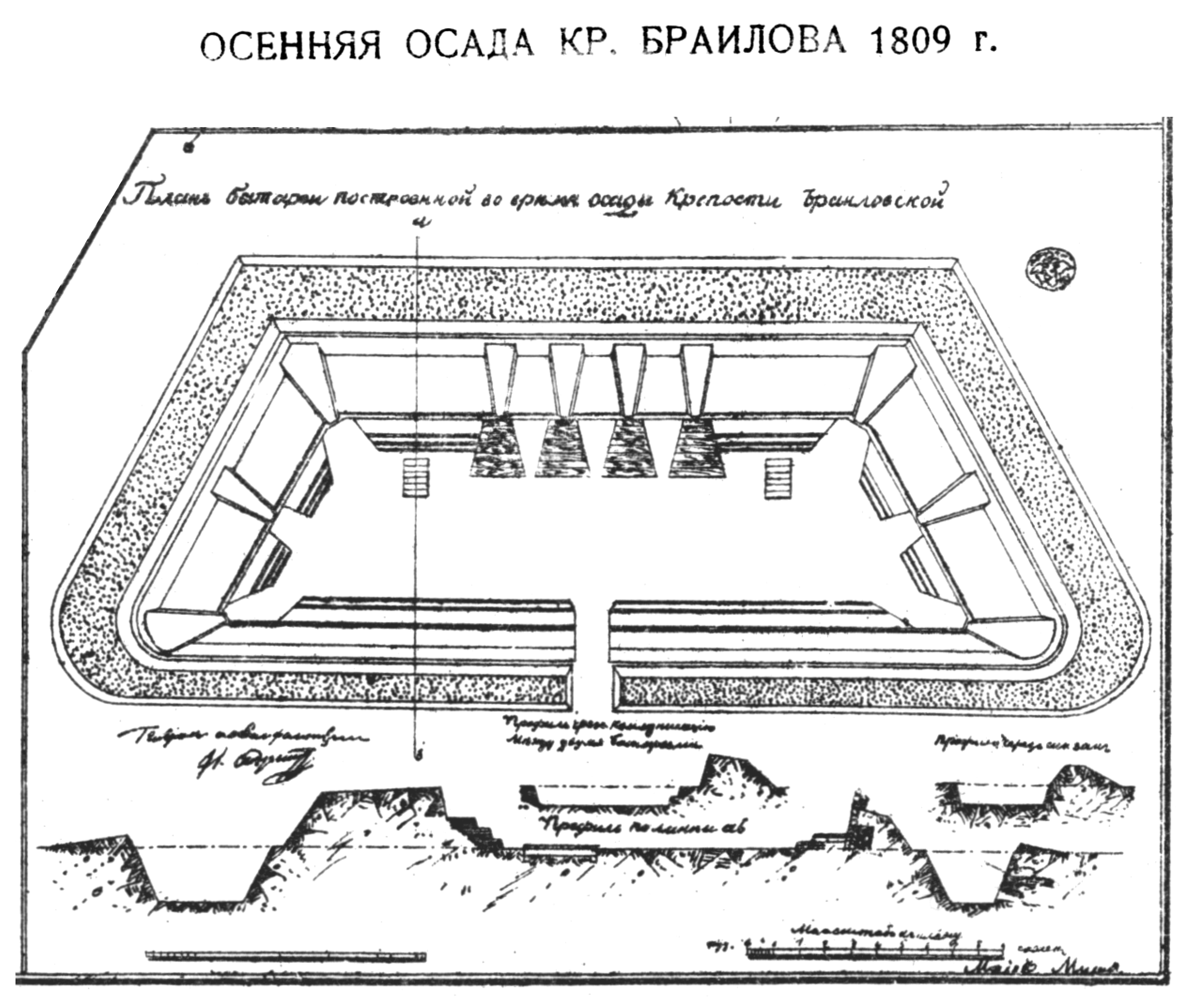 Осенняя осада крепости Браилова 1809 год. План батареи, построенной во время осады крепости