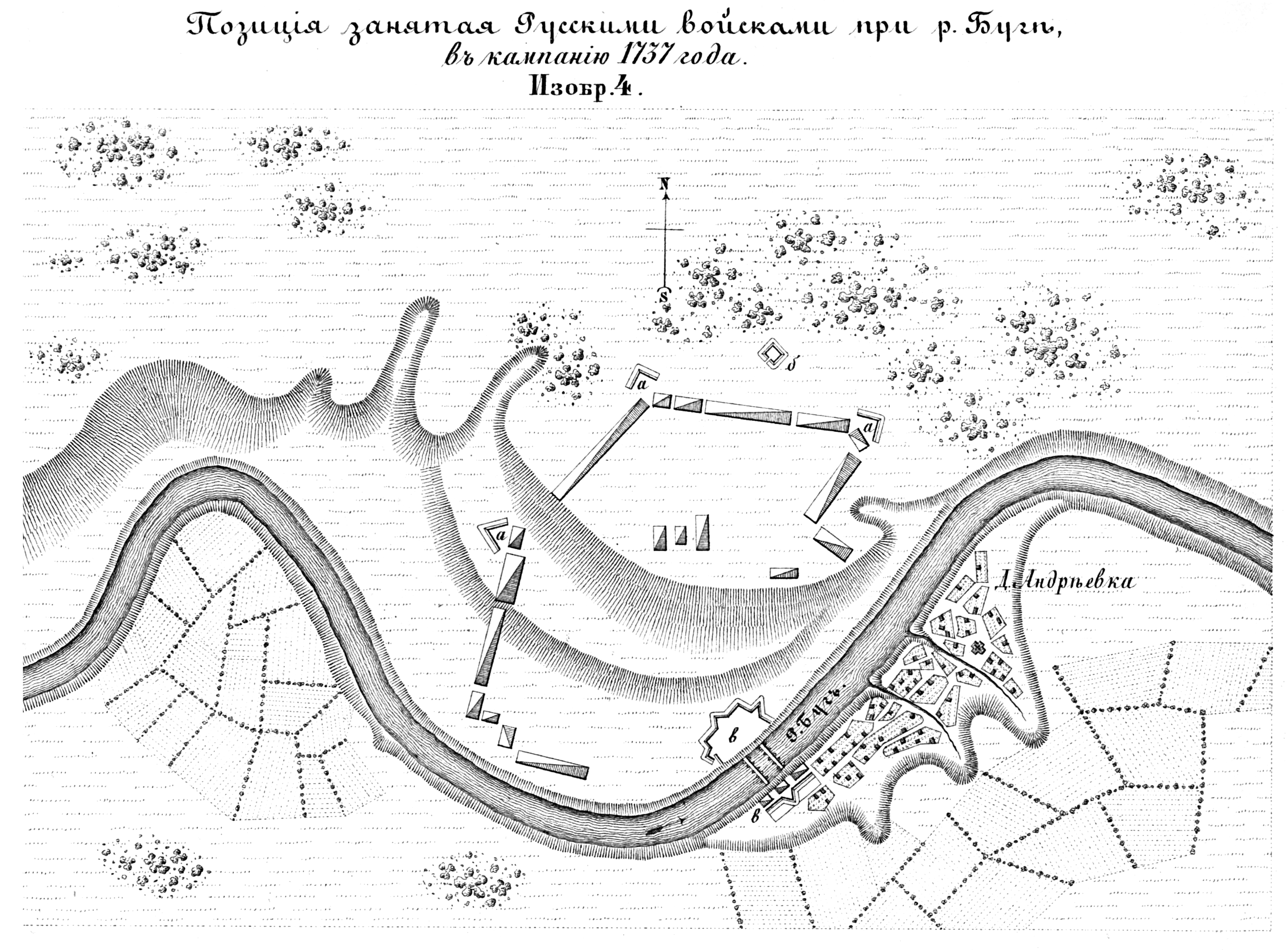 Полевые и временные укрепления. Изобр.4. Позиция, занятая русскими войсками при р.Буг в кампанию 1737 года