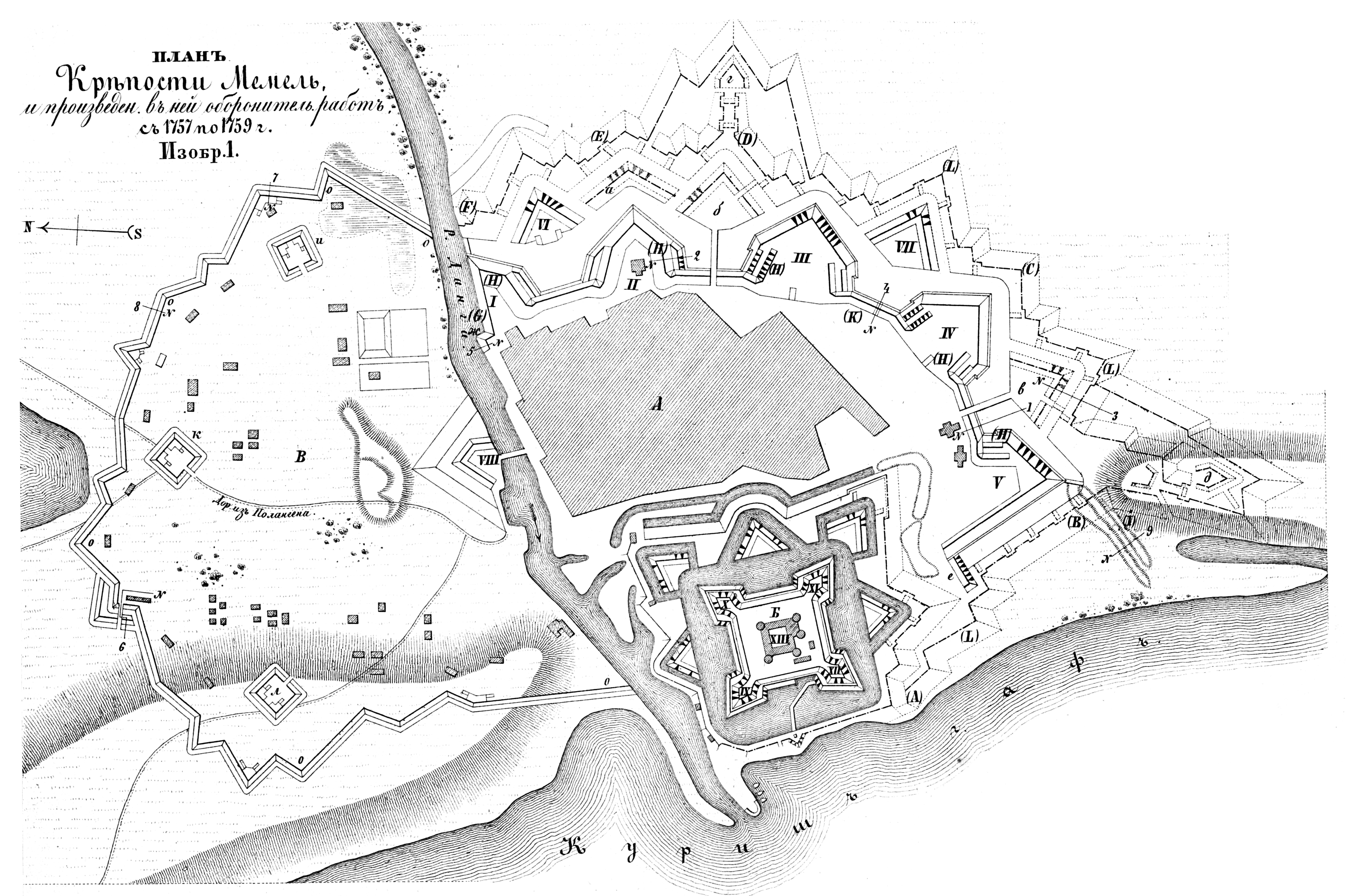 Полевые и временные укрепления. Изобр.1. План крепости Мемель и произведенные в ней оборонительные работы с 1757 по 1759 год