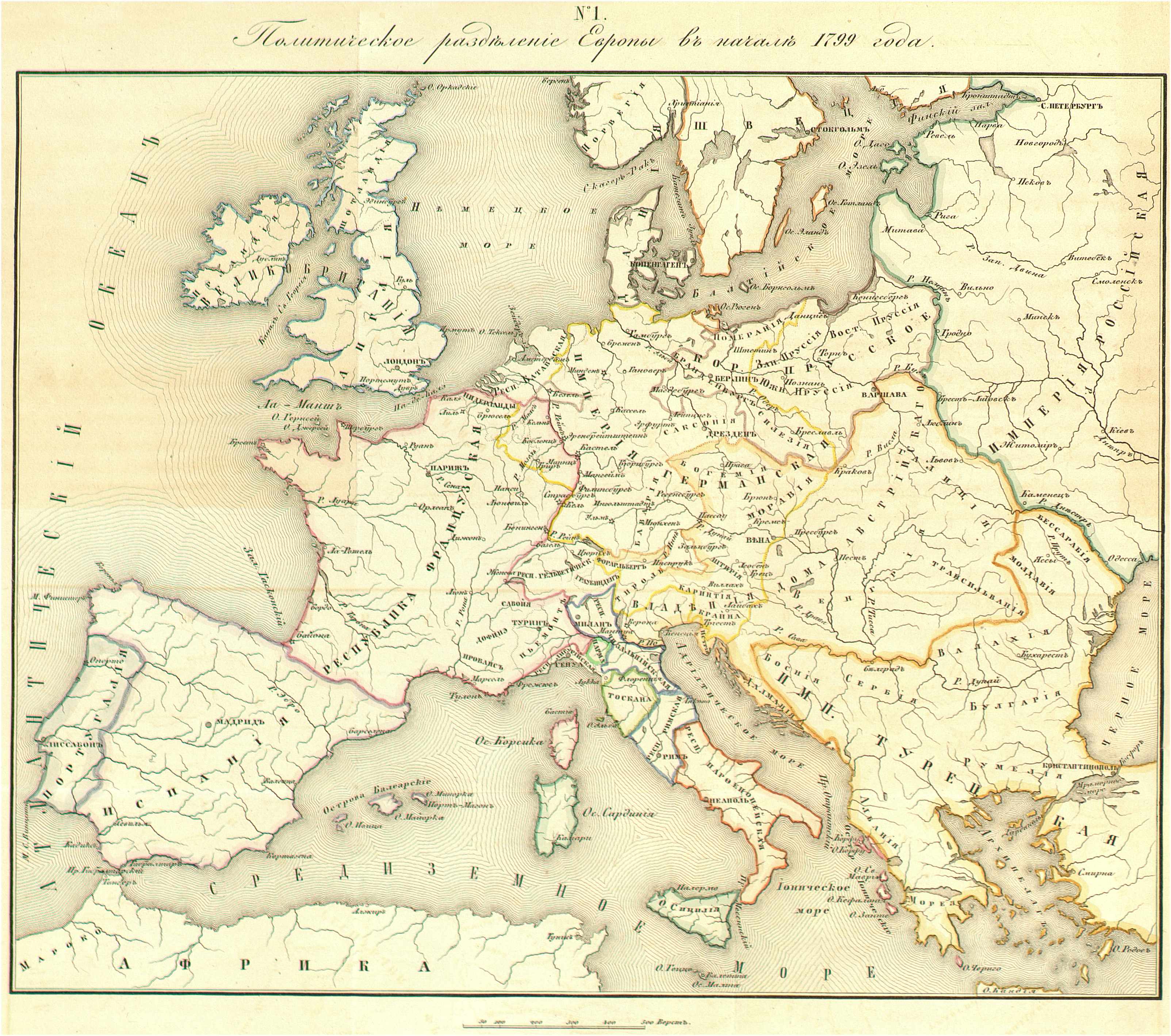 Политическое разделение Европы в начале 1799 года.
