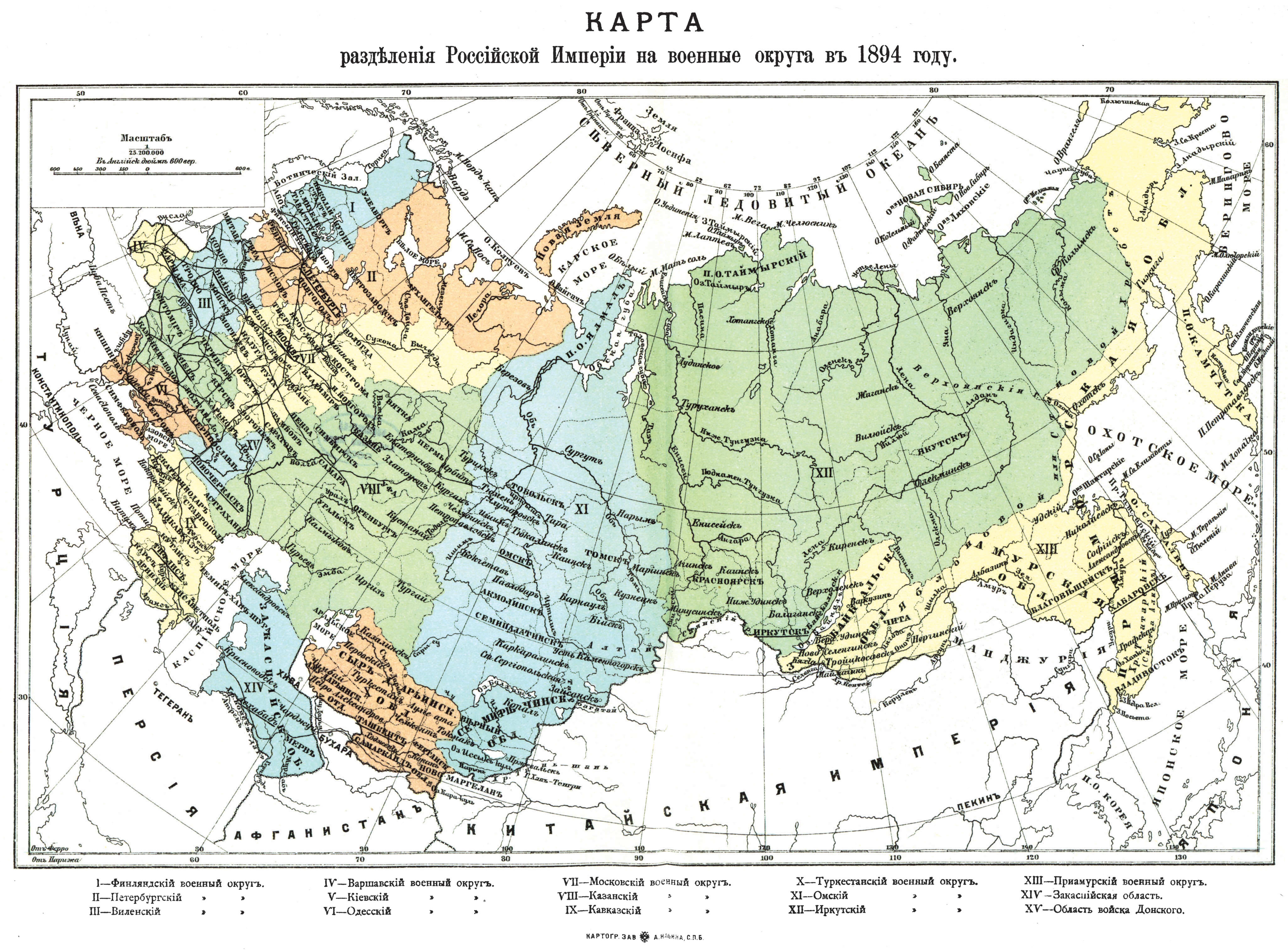 Разделение Российской Империи на военные округа в 1894 году