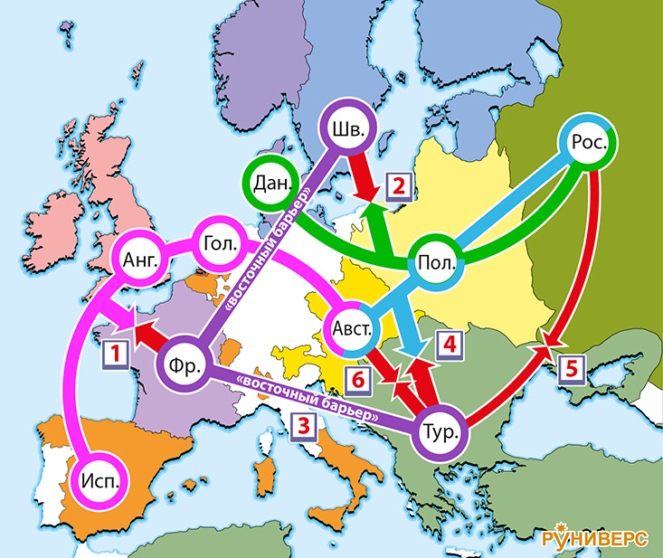 1667–1721 гг. Сдерживание Франции, Турции и Швеции