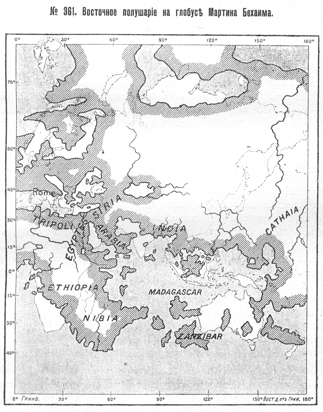 №361. Восточное полушарие на глобусе Мартина Бехаима.