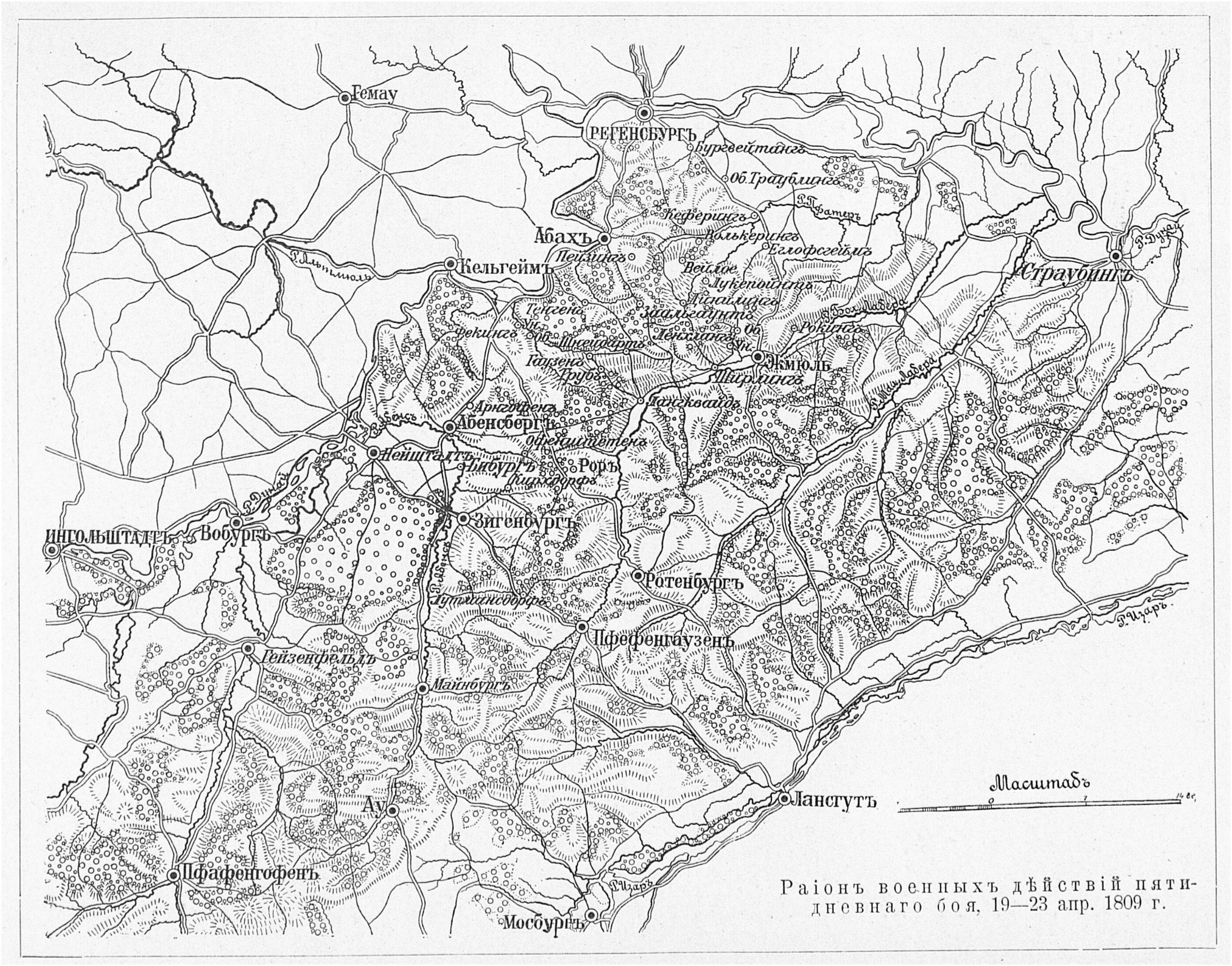 Район военных действий пятидневного боя 19-23 апреля 1809 года