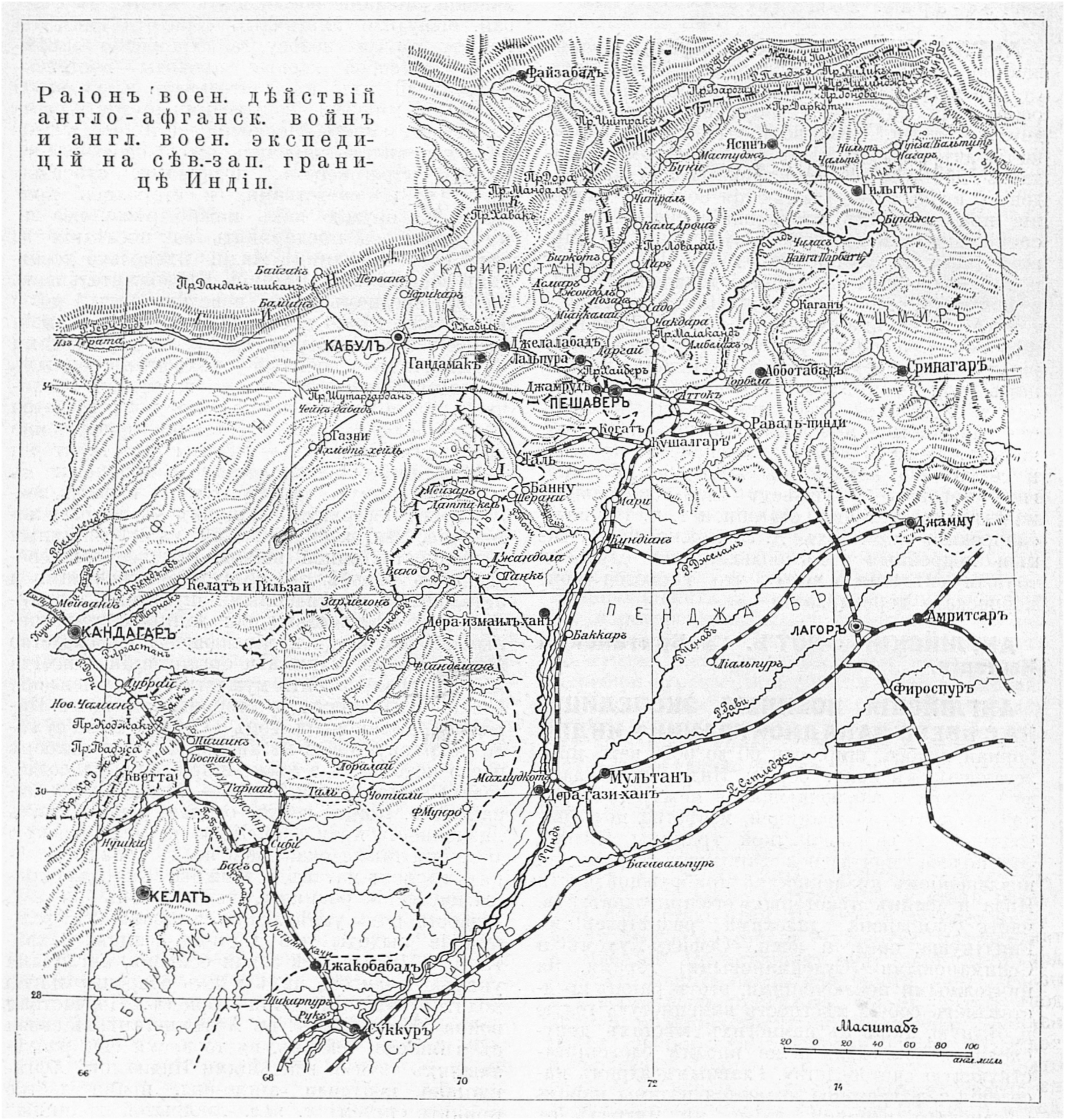 Район военных действий англо-афганских войн и английских военных экспедиций на северо-западной границе Индии