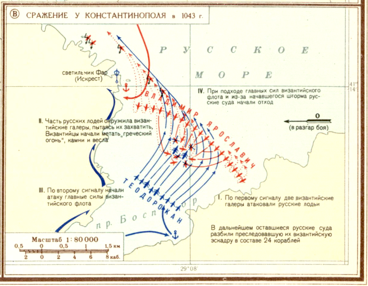 Древнерусское государство. Мореходство на Руси до XIIв. (В) Сражение у Константинополя в 1043 г.