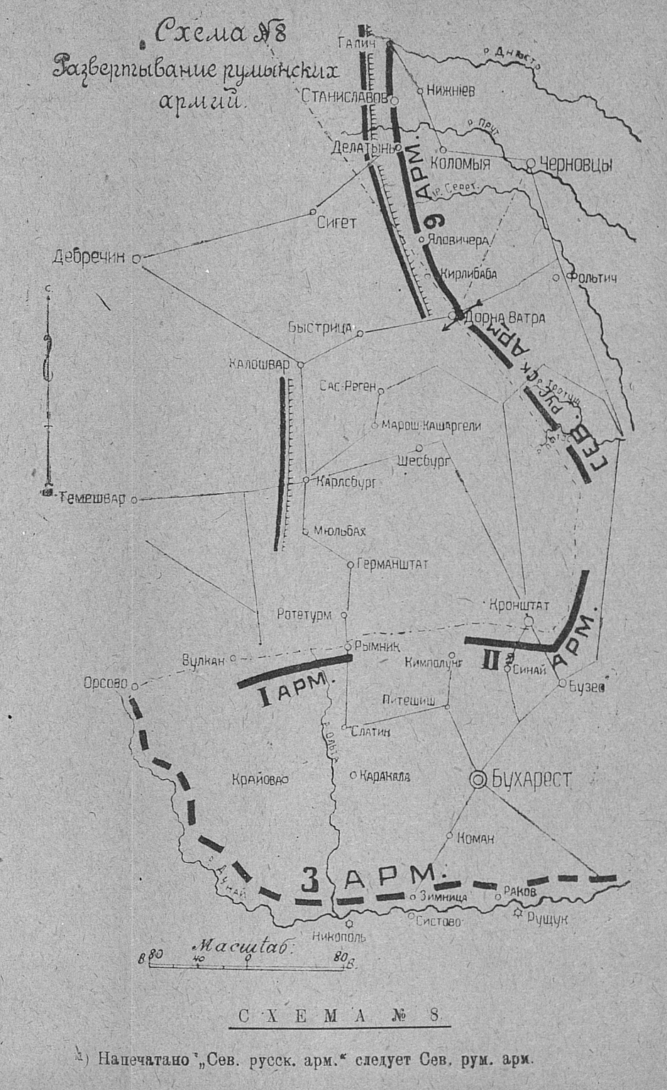 Схема №8. Развертывание румынских армий.