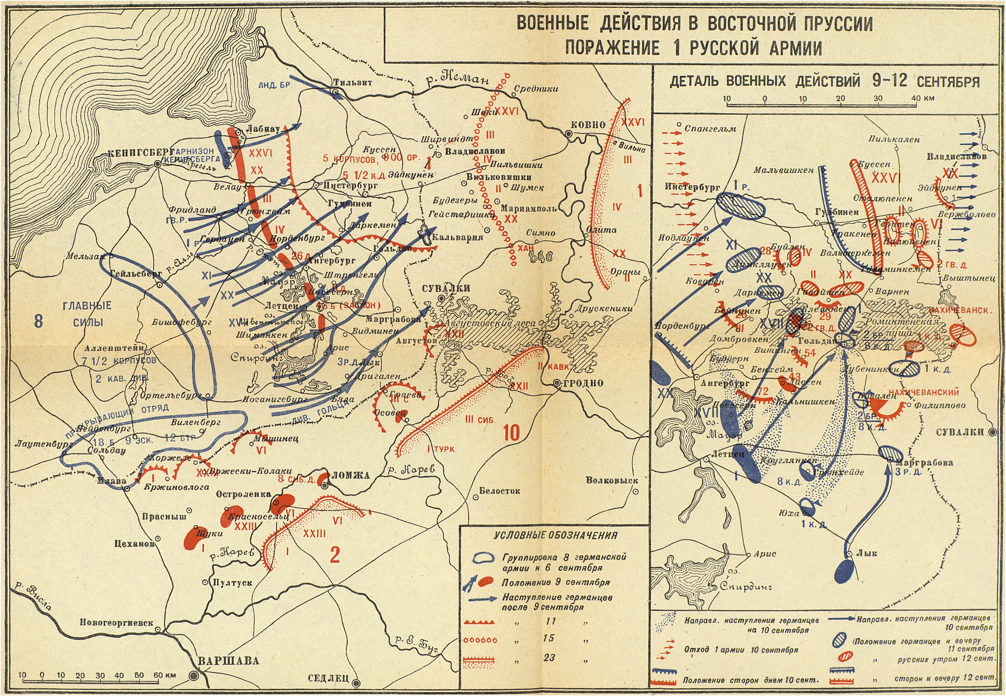 Кампания 1914 года. Русский театр. Военные действия в Восточной Пруссии. Поражение 1-й русской армии (перид с 6 по 23 сентября)