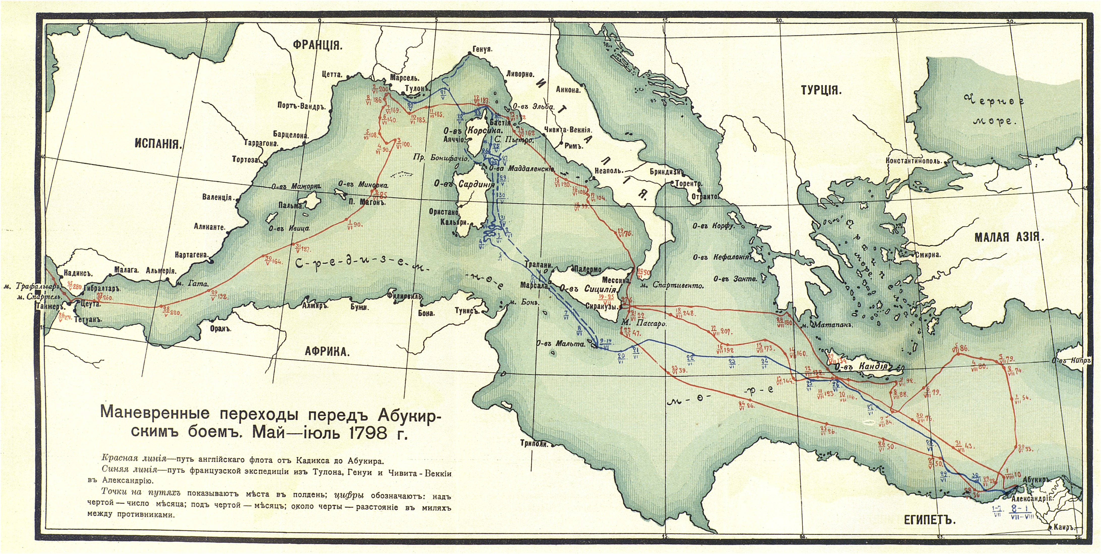 Маневренные переходы английских и французских флотов перед Абукирским боем. Май - июль 1798 года