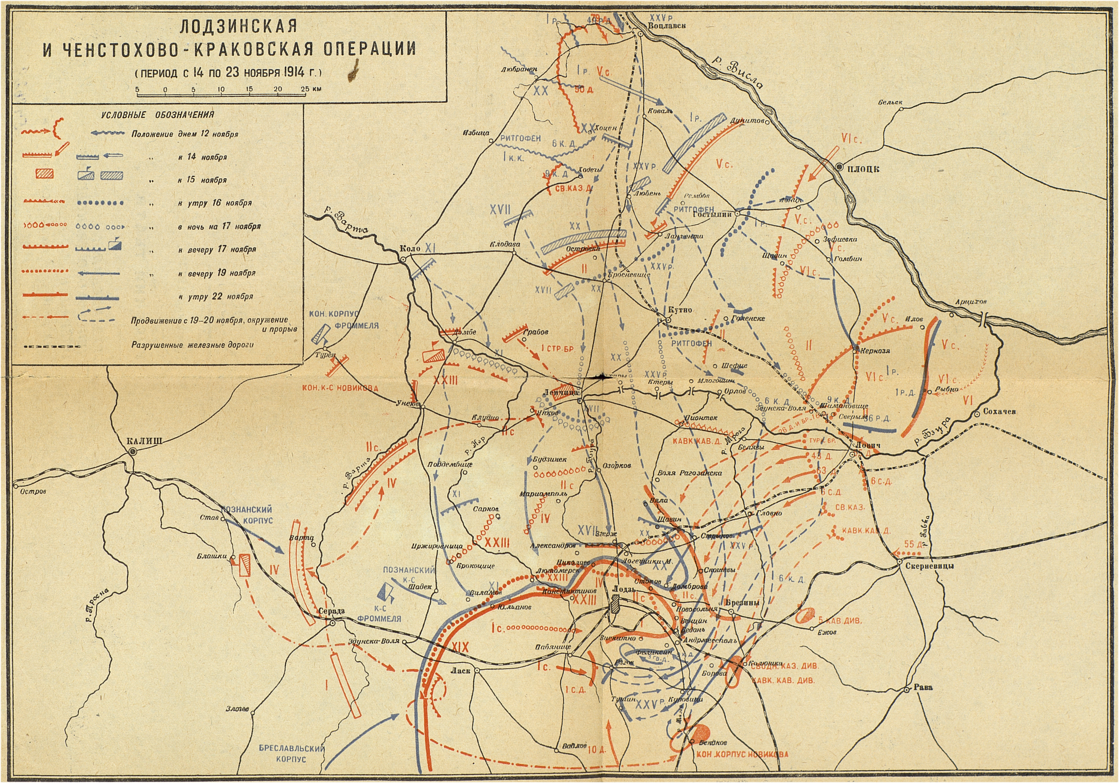 Кампания 1914 года. Русский театр. Лодзинская и ченстохово-краковская операции ( период с 14 по 23 ноября)