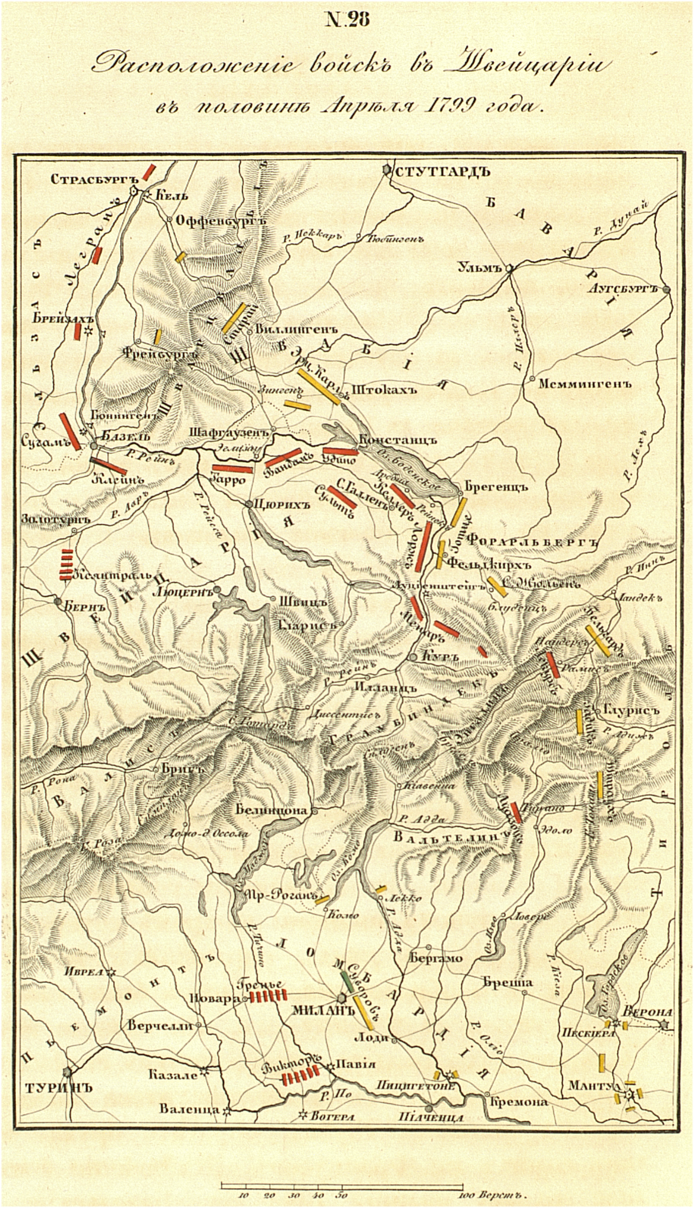 Расположение войск в Швейцарии в половине апреля 1799 года