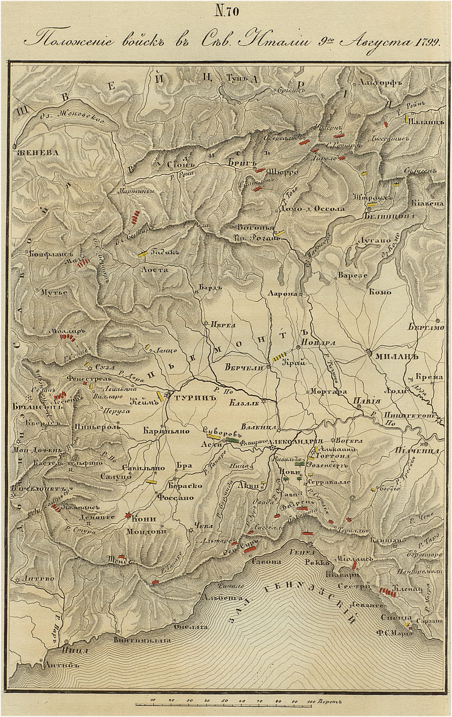 Положение войск в северной Италии 9 августа 1799 года