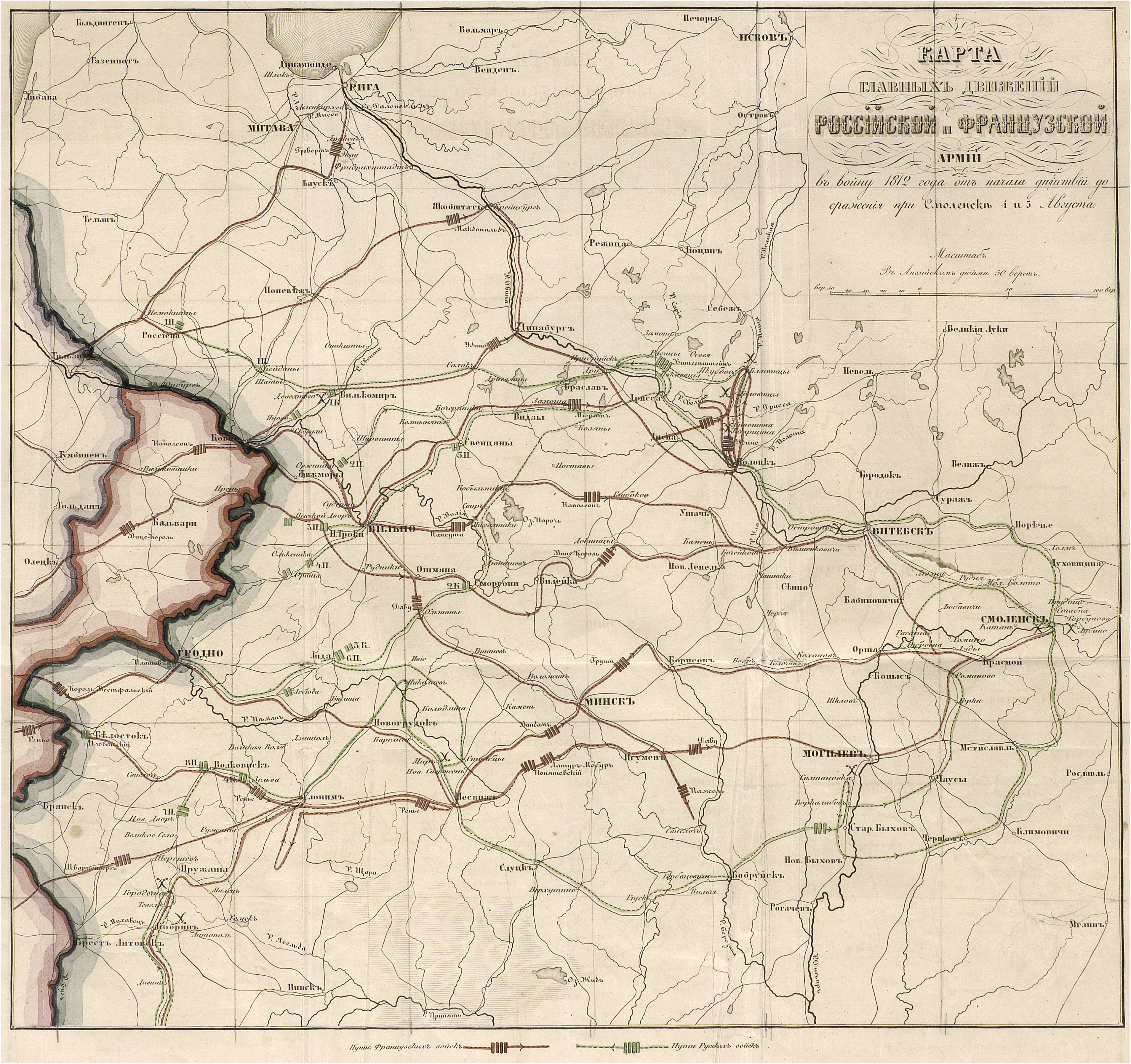 Главные движения Российской и Французской армий в войну 1812 года от начала действий до сражения при Смоленске 4 и 5 августа