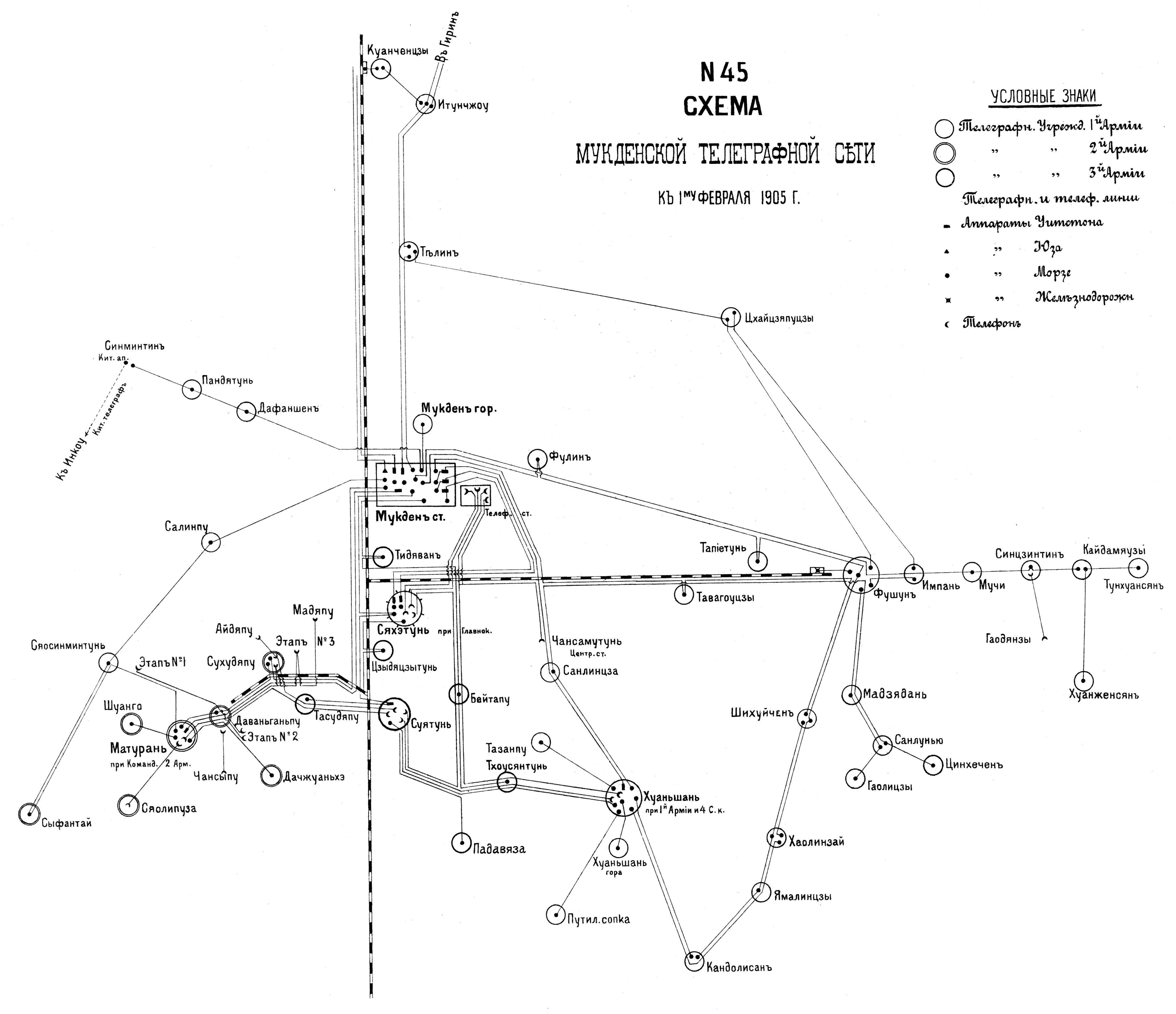 Мукденская телеграфная сеть к 1 февраля 1905 года