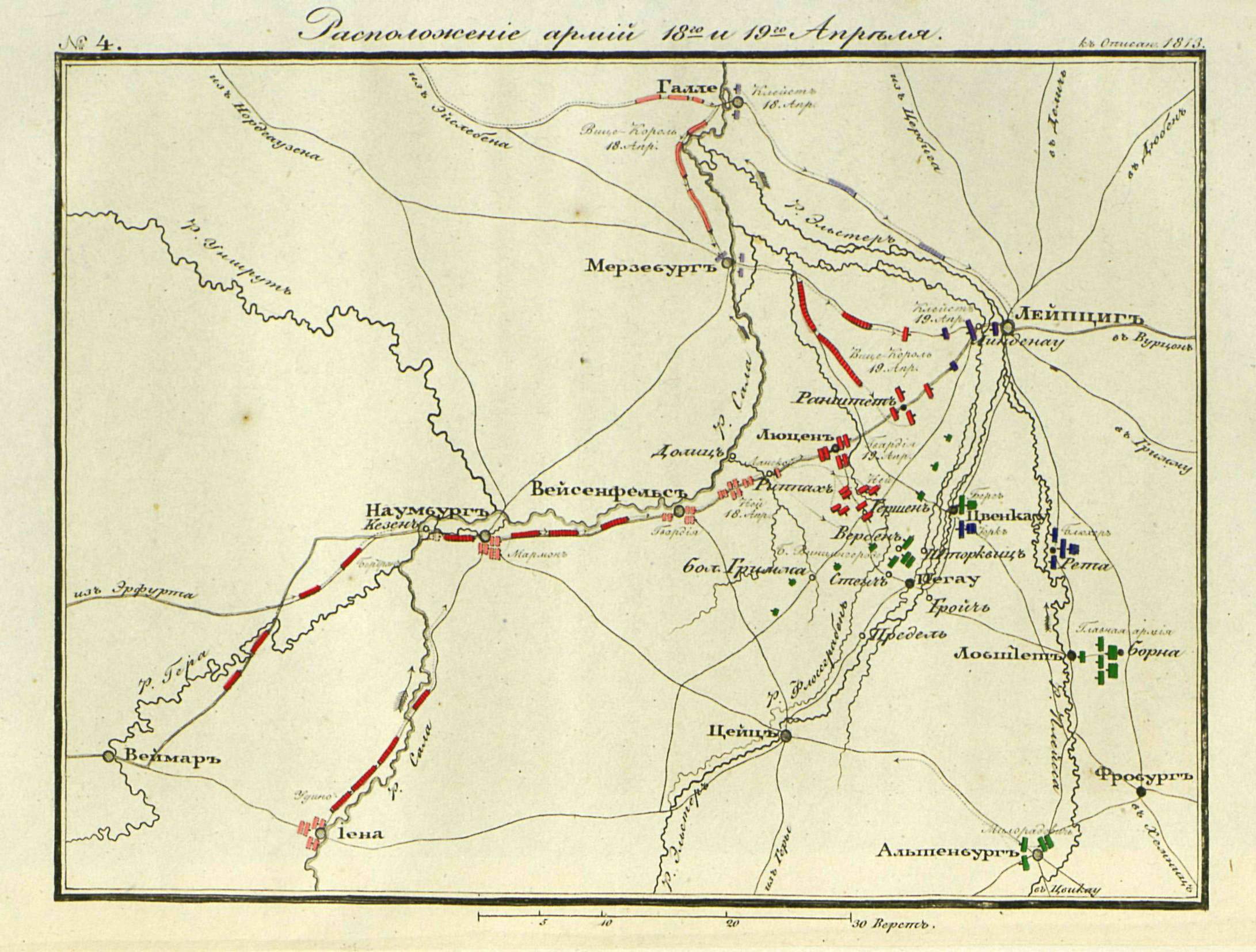 Карта расположения армий 15 сентября и для объяснения действий до сражения при Лейпциге