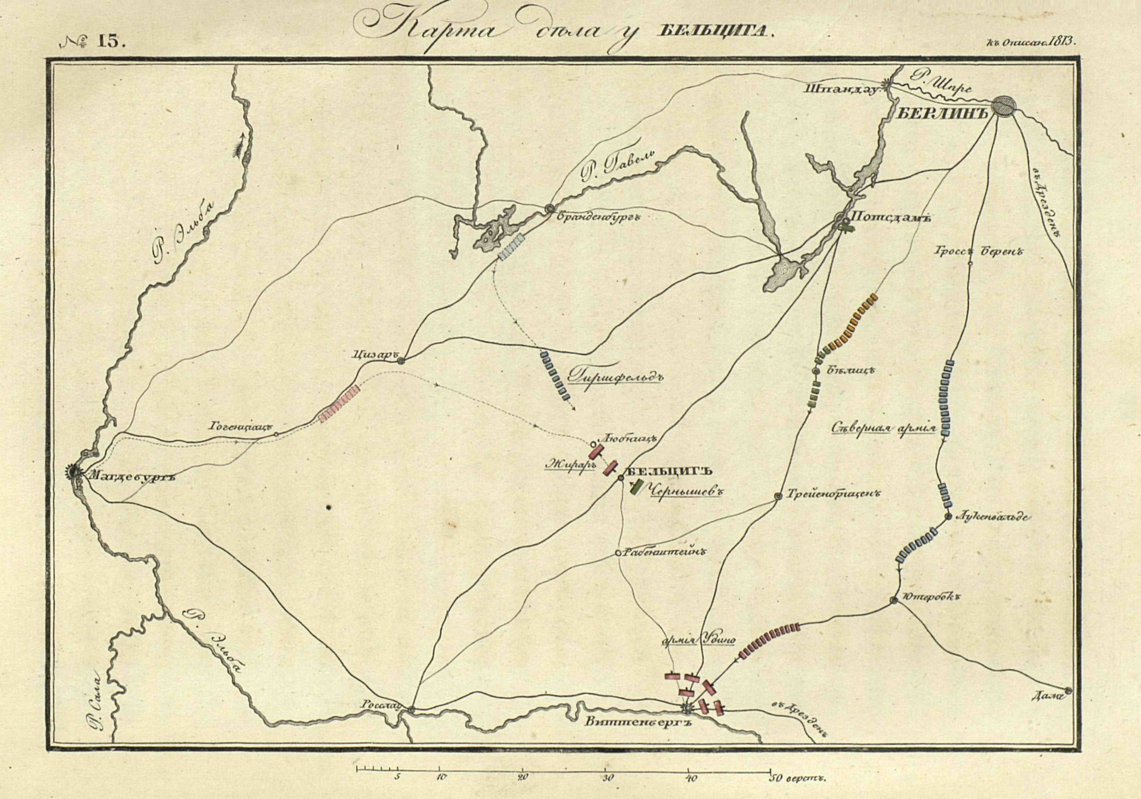 Карта расположения армий 15 сентября и для объяснения действий до сражения при Лейпциге