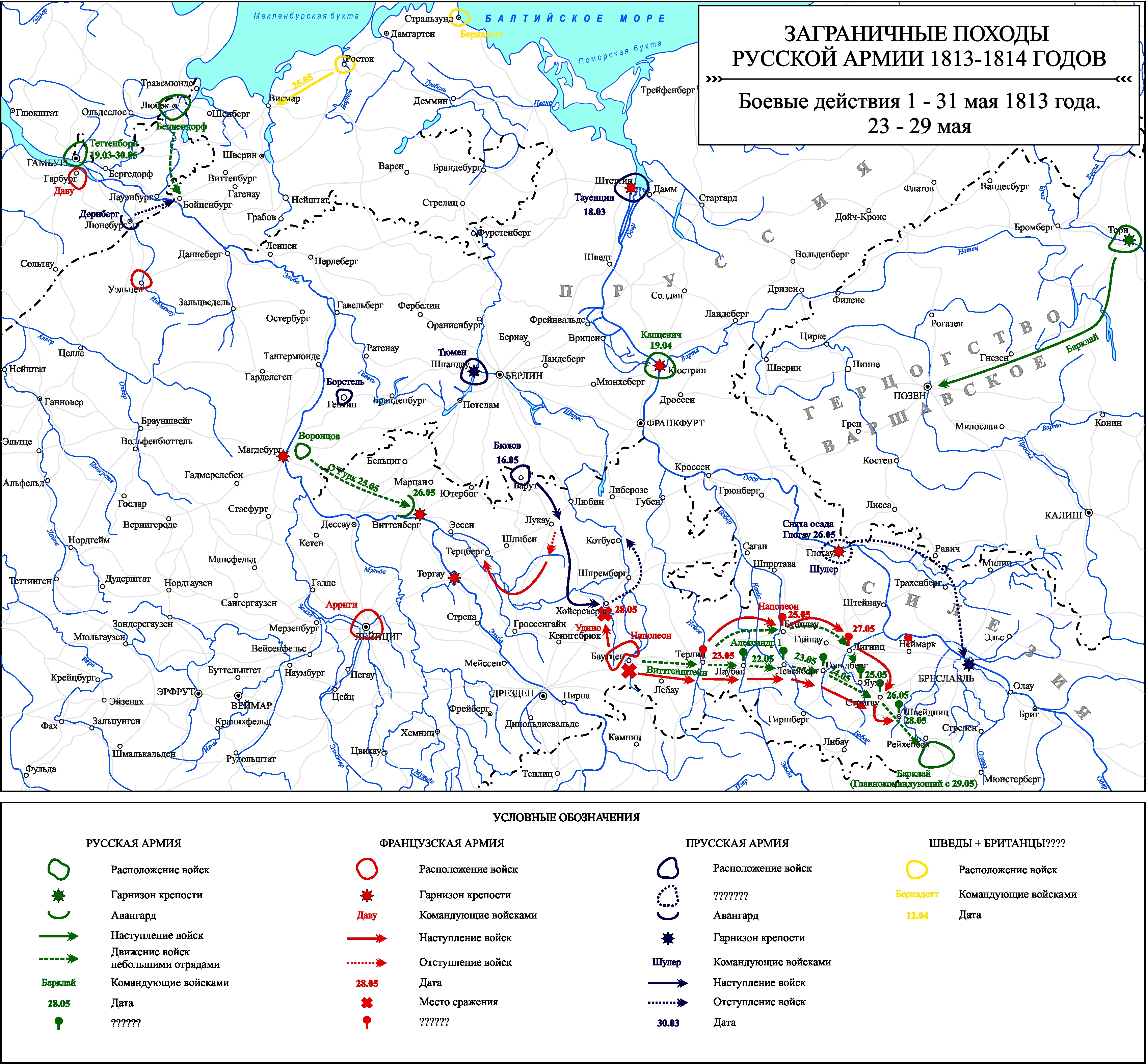 Заграничные походы Русской армии 1813-1814 гг. Положение на 23-29 мая 1813 г.
