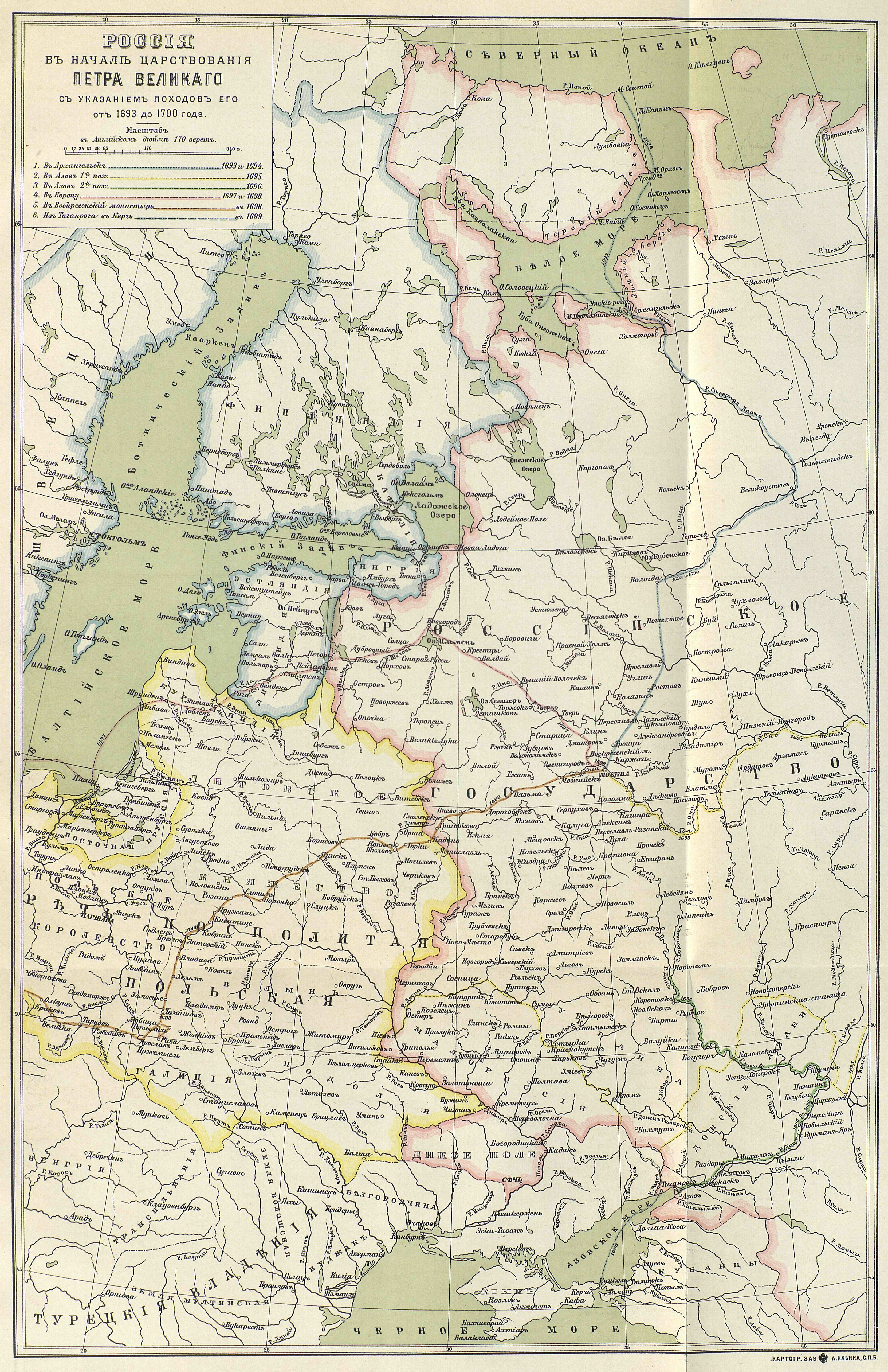 Россия в начале царствования Петра Великого с указанием походов его от 1693 до 1700 года