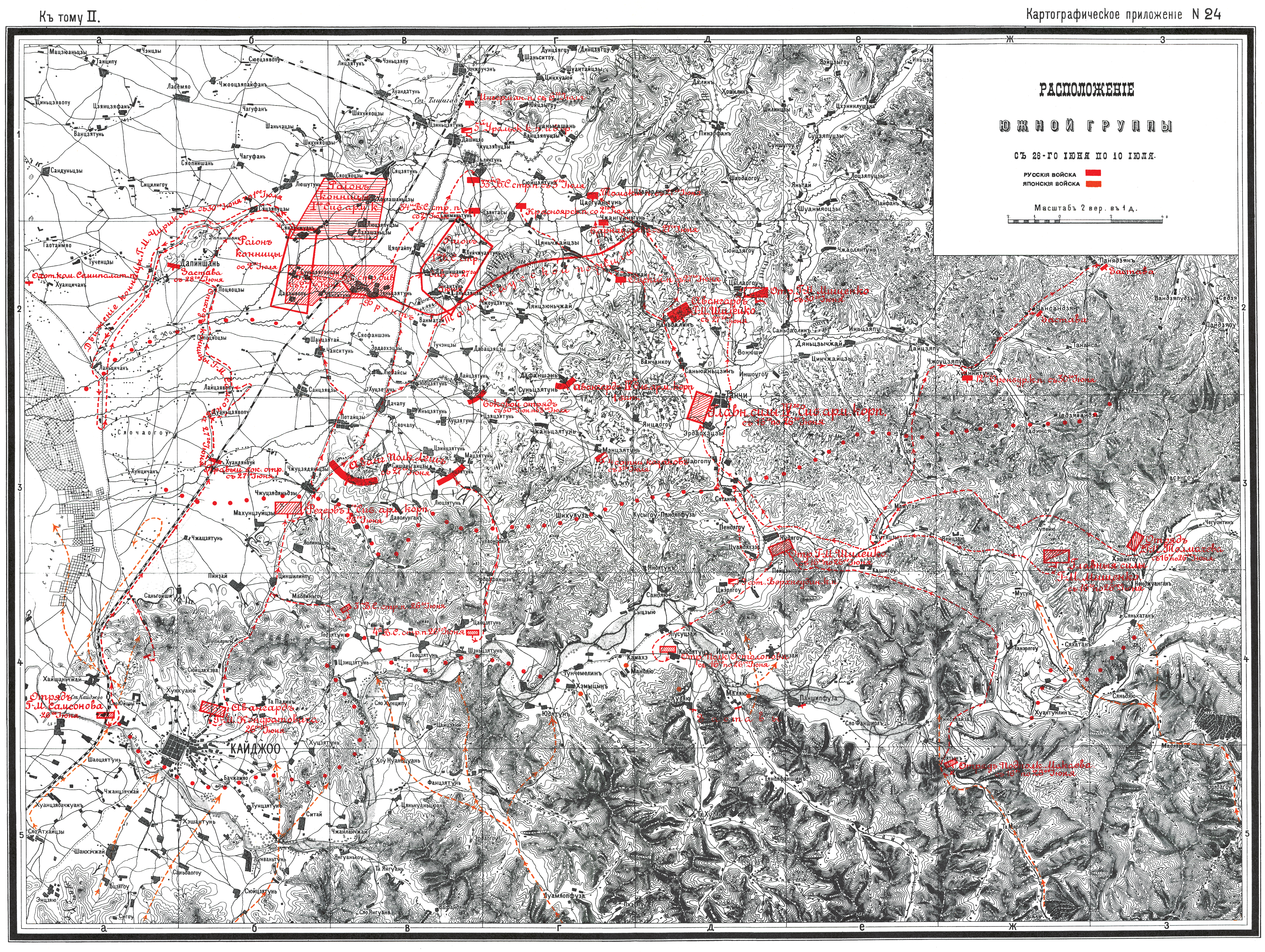 Расположение южной группы с 26 июня по 10 июля 1904 года