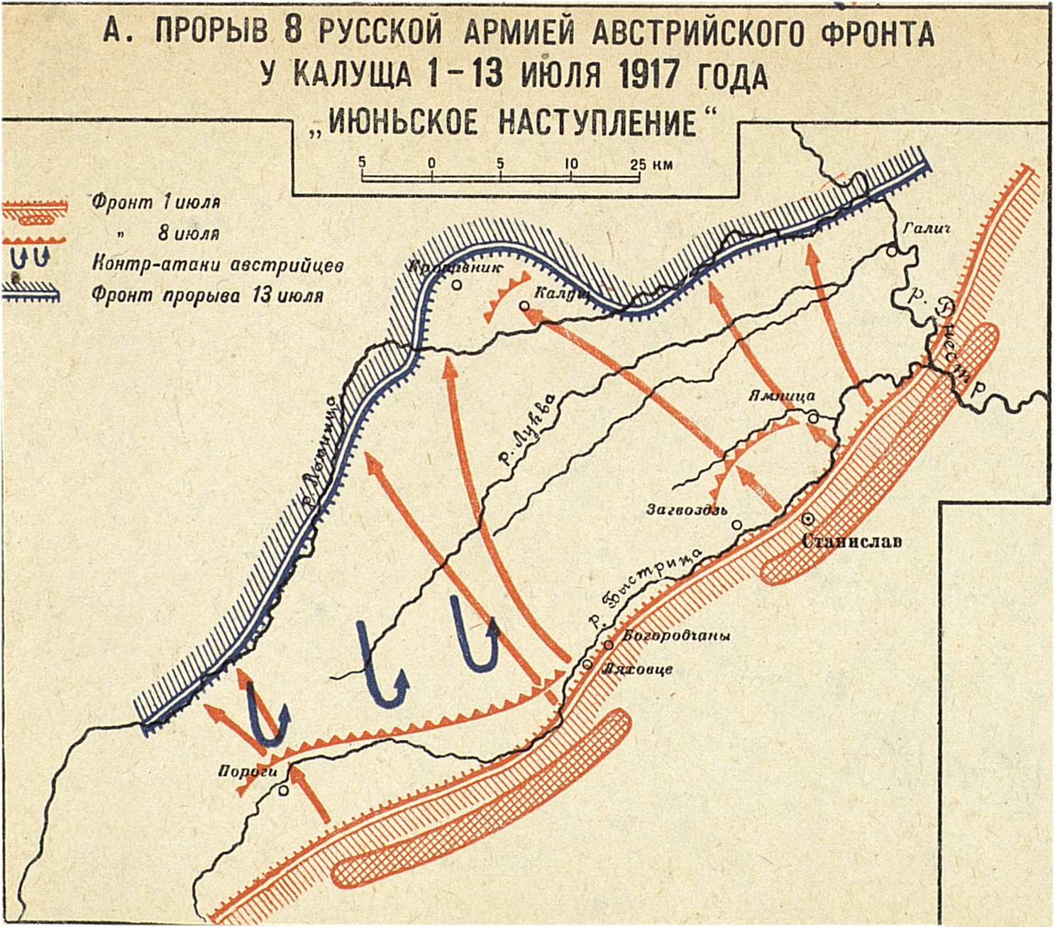 Кампания 1917 года. Русский театр. Наступление и отход юго-западного фронта. Прорыв 8-й русской армией австрийского фронта у Калуща 1 - 13 июля 1917 года. "Июньское наступление"