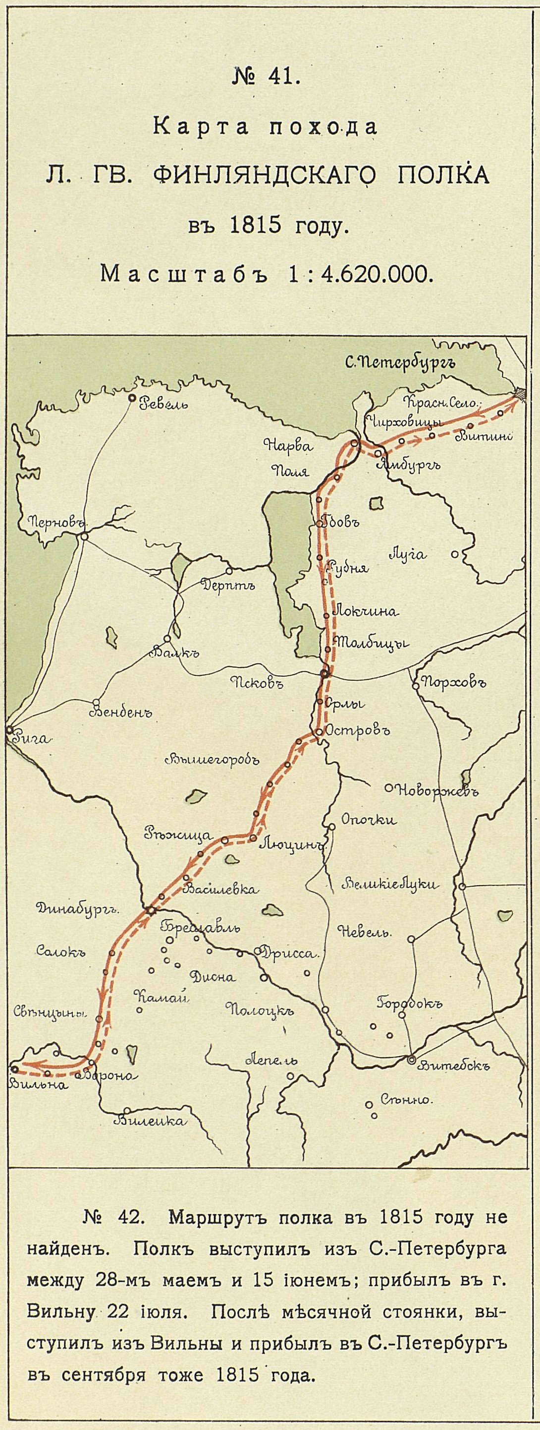 Походы Лейб-Гвардии Финляндского полка в 1815 и 1821-22 годах. Карта похода Лейб-Гвардии Финляндского полка в 1821-22 годах