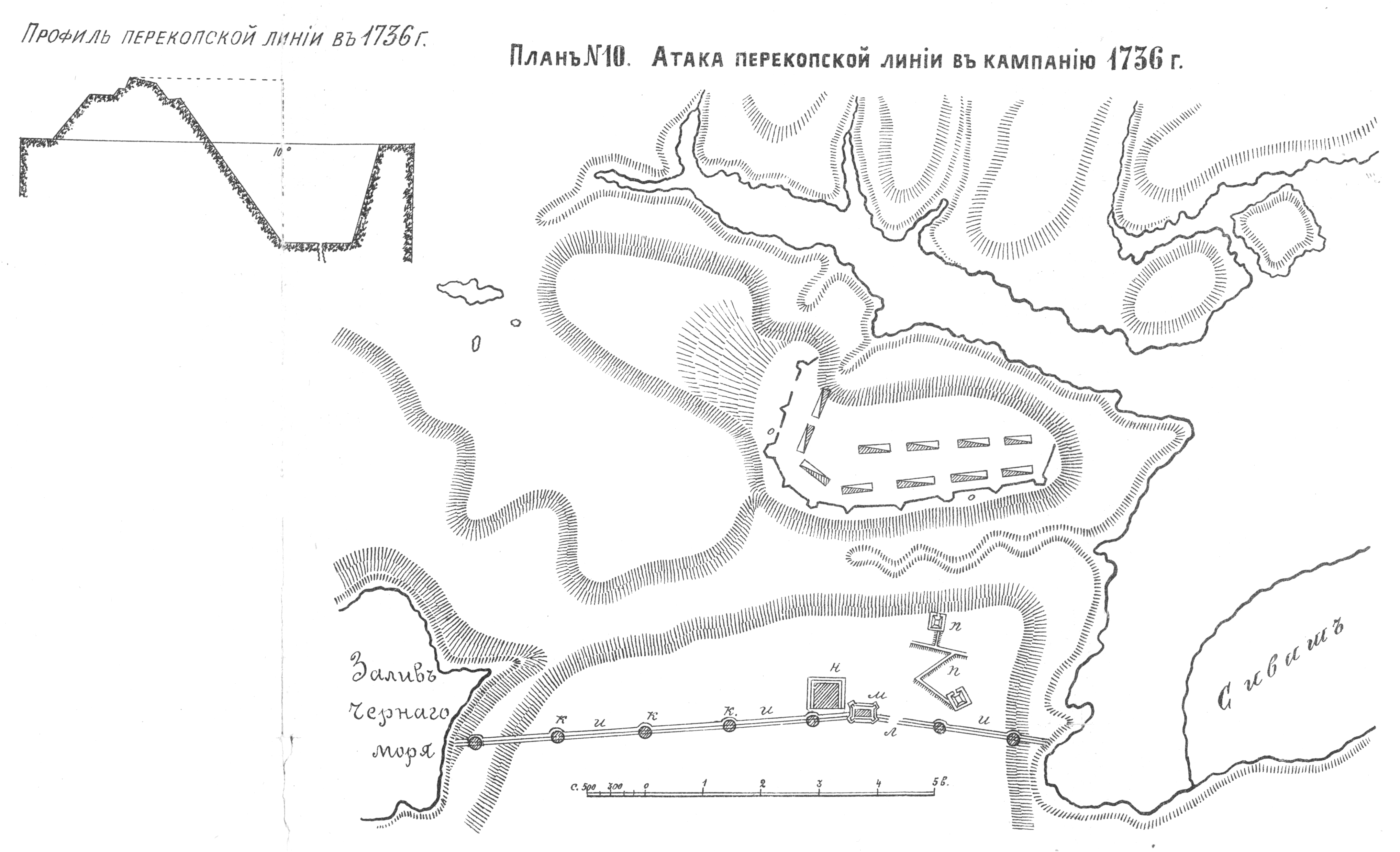 17-го мая, оставив в урочище Сиваш всех больных и обозы, Миних подошел к столь желанной Перекопской линии и в расстоянии пушечного выстрела от нее, на берегу Гнилого моря, расположился лагерем, прикрыв себя ретраншементом…