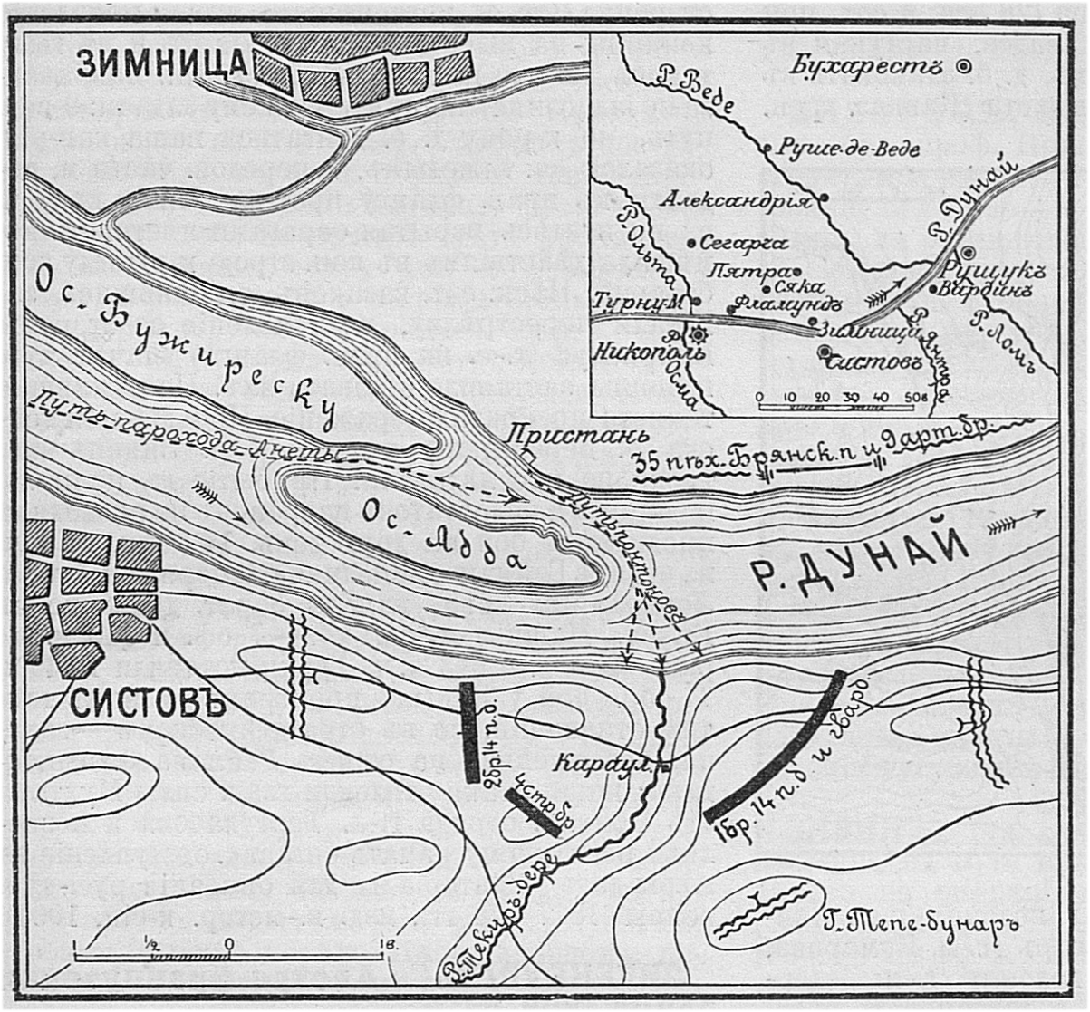 Место переправы русской армии через Дунай в 1878 году у селения Зимница
