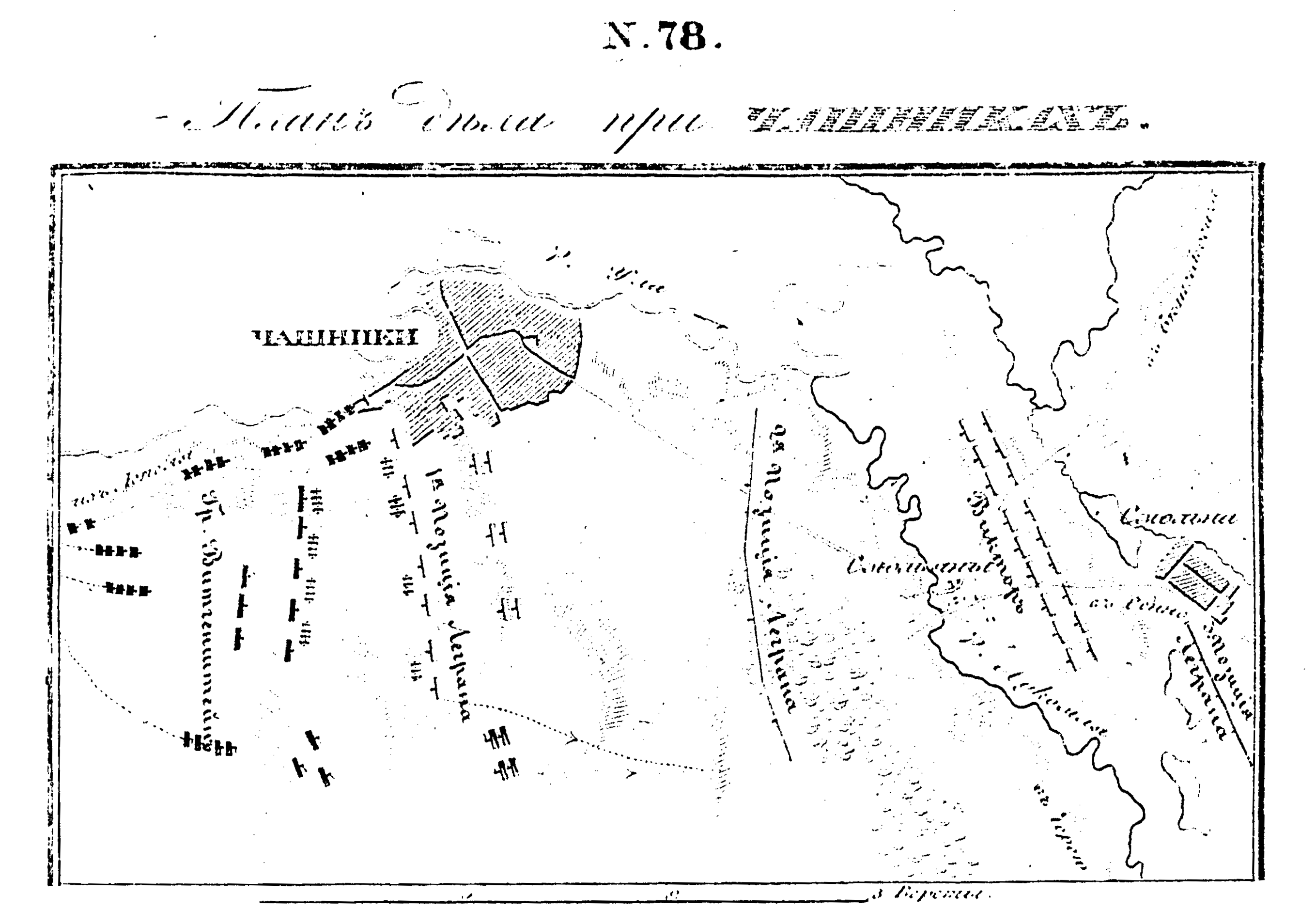 Карта-схема битвы при Фрауштадте, 13 (3) февраля 1706 года