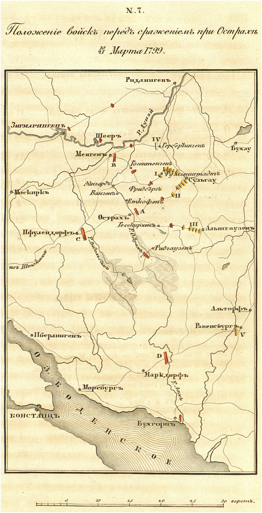 Положение войск перед сражением при Острах 10 марта 1799.