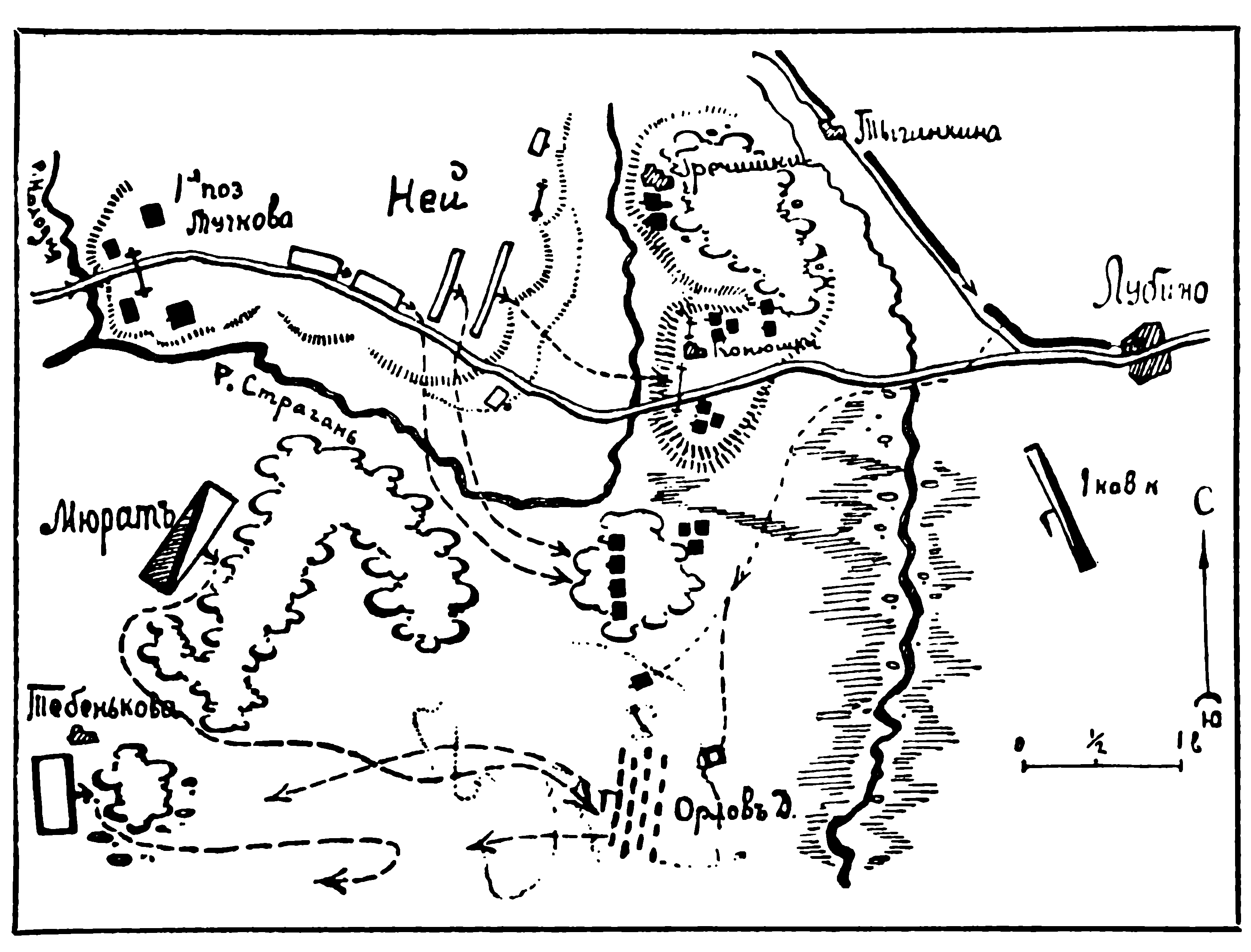Карта-схема битвы при Фрауштадте, 13 (3) февраля 1706 года
