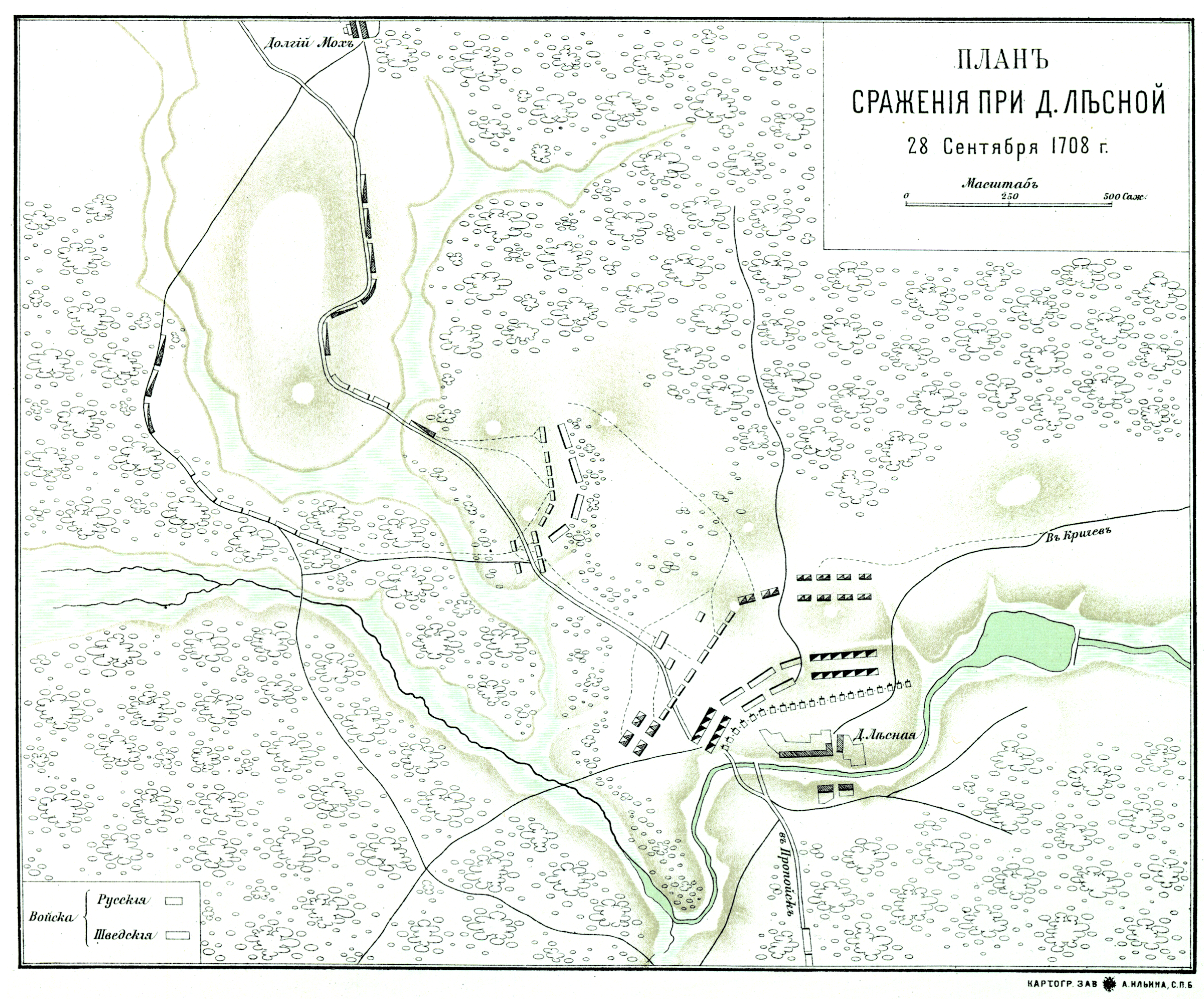 План сражения при деревне Лесной 28 сентября 1708 года