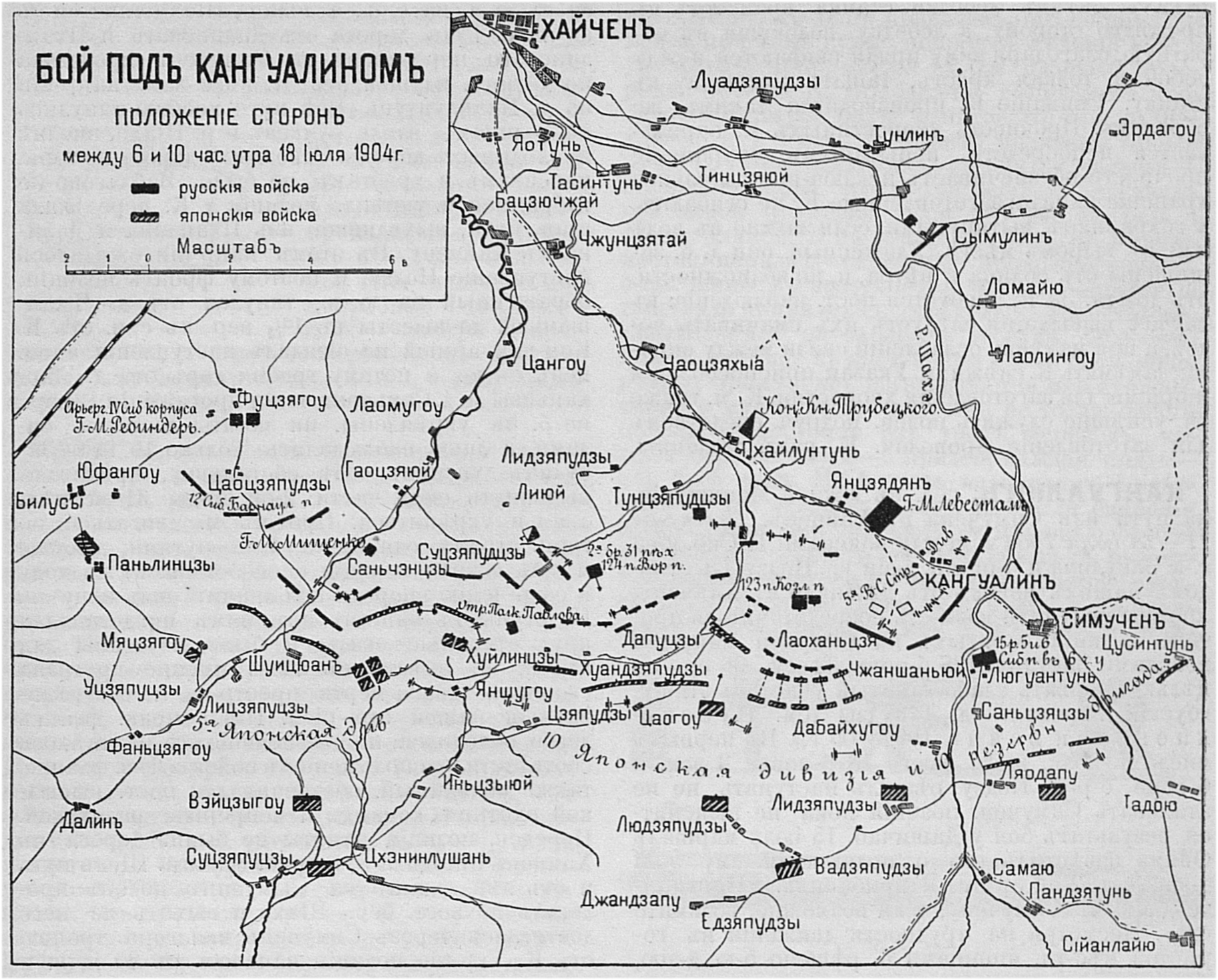 Бой под Кангуалином. Положение сторон между 6 и 10 часами утра 18 июля 1904 года