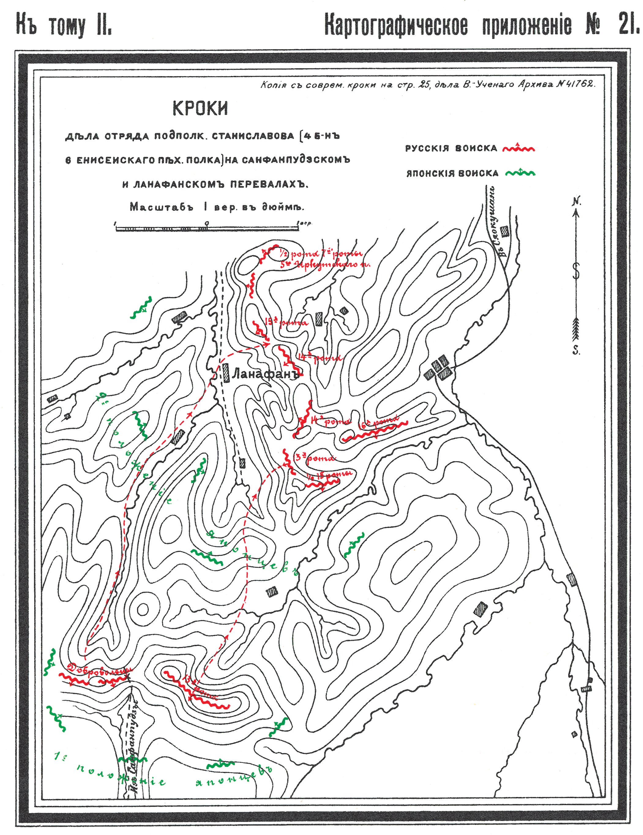 Кроки дела отряда Подполковника Станиславова (4 батальона 6 Енисейского пехотного полка) на Санфанпудзском и Ланафанском перевалах