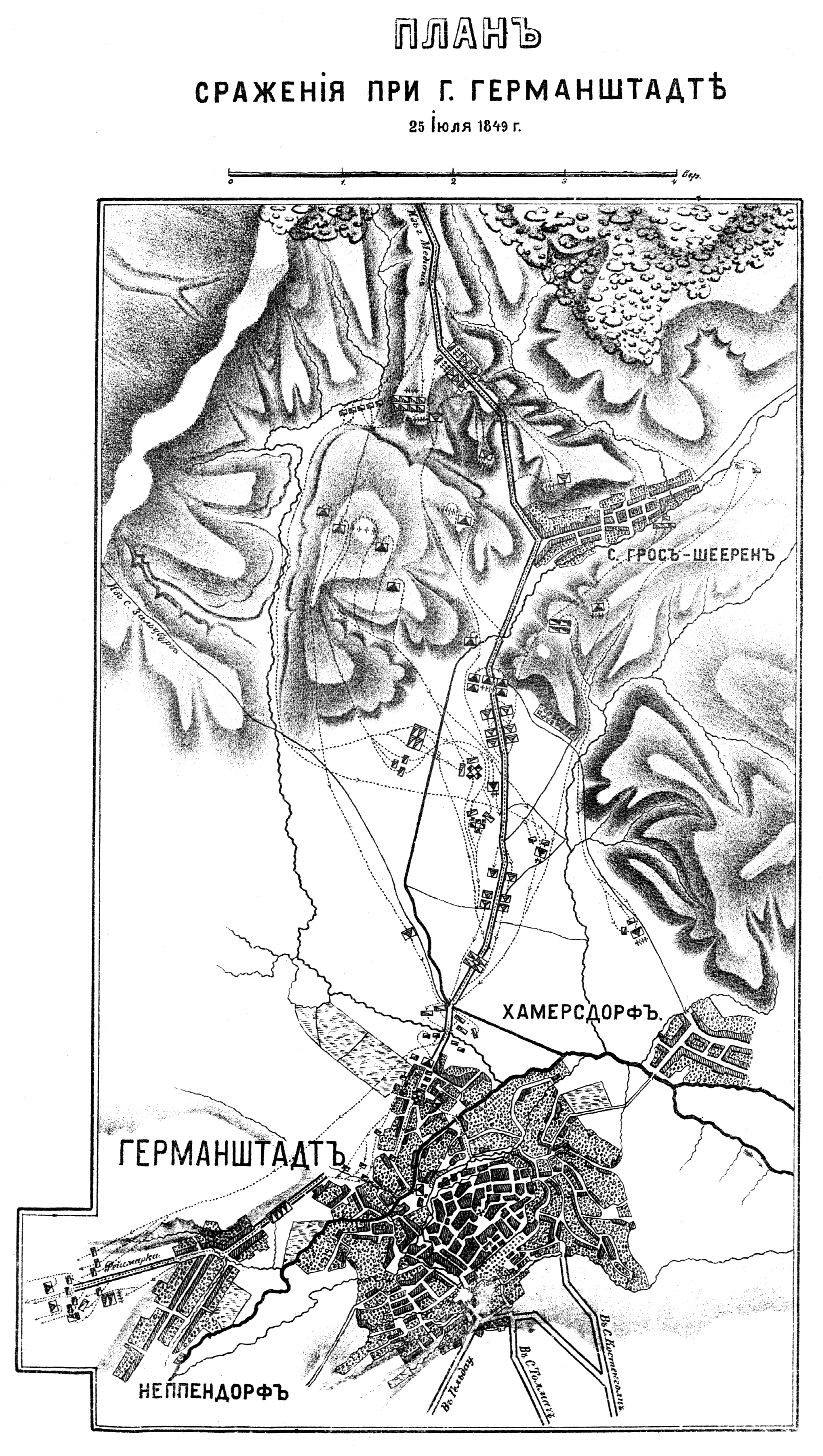 Карта-схема битвы при Фрауштадте, 13 (3) февраля 1706 года