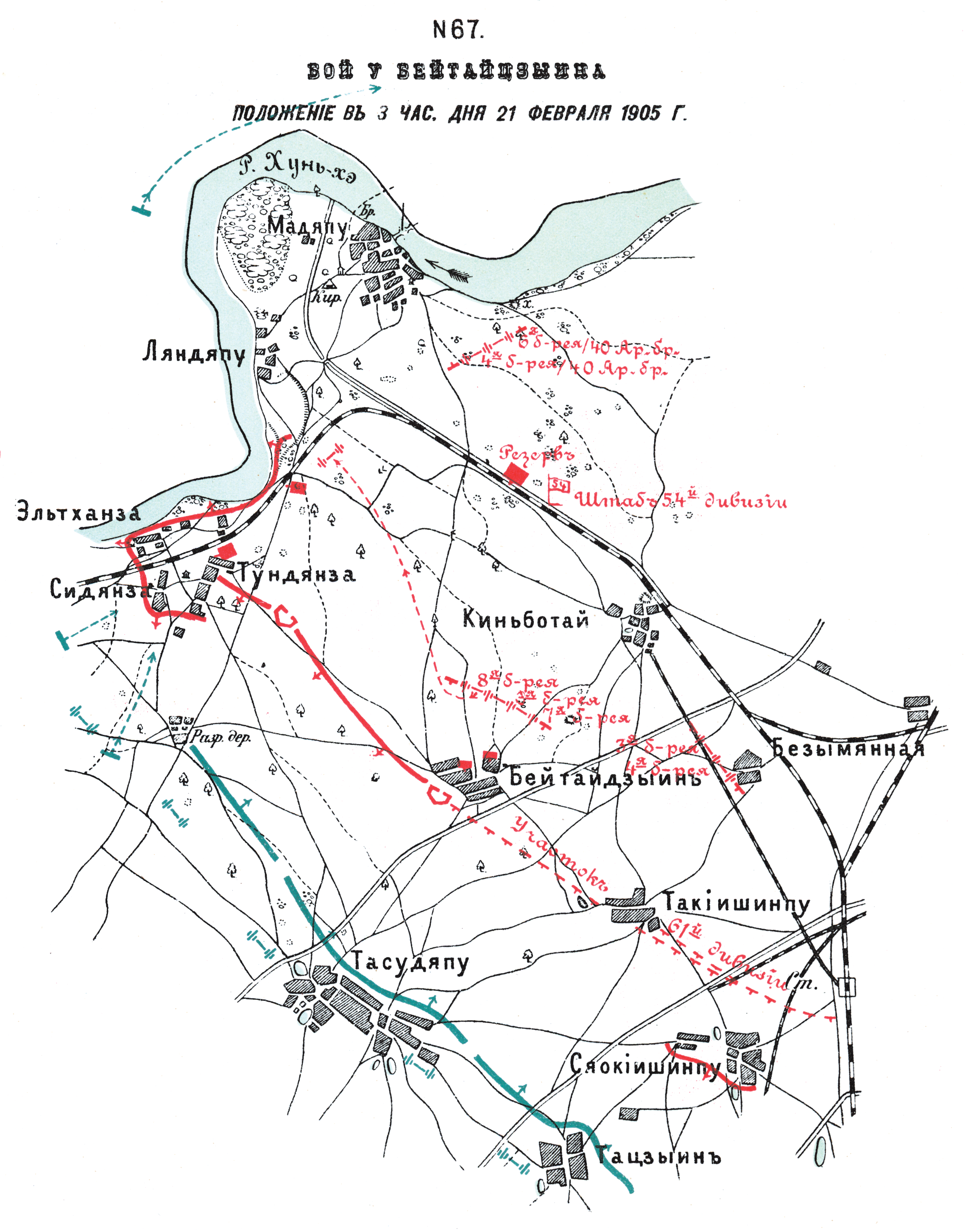 Бой у Бейтайцзыина. Положение в 3 часа дня 21 февраля 1905 года