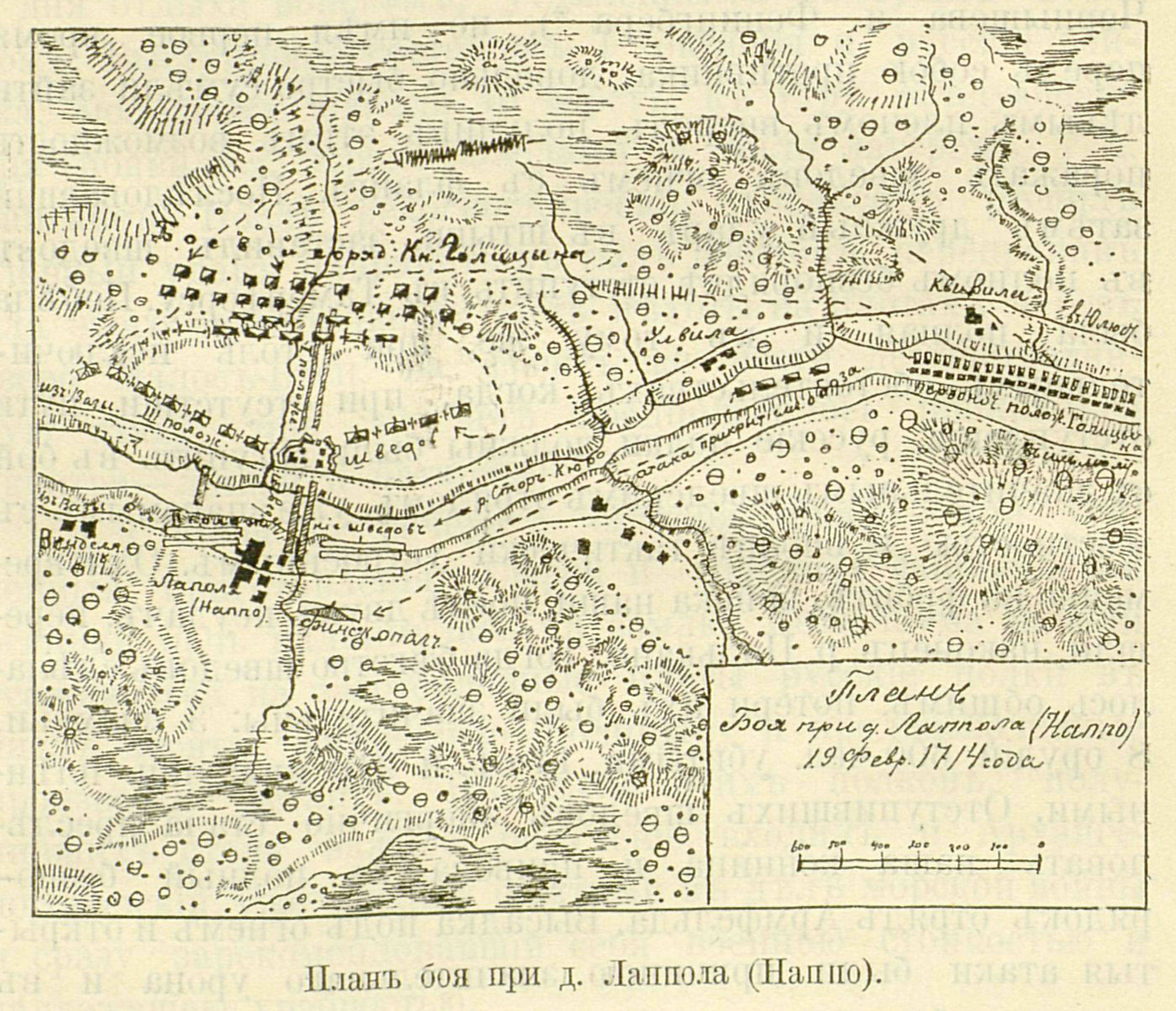 План боя при деревне Лаппола (Наппо) 19 февраля 1714 года