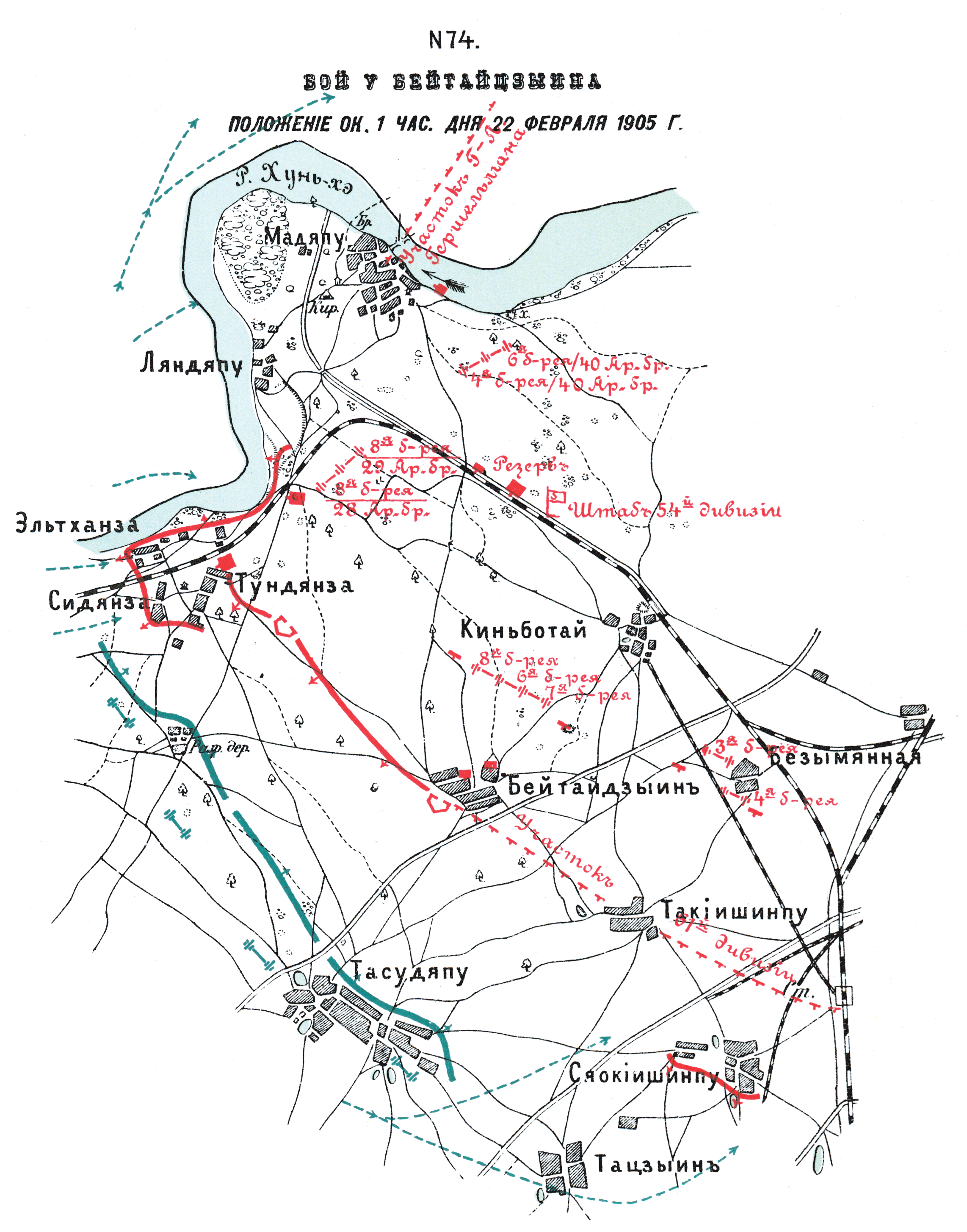 Бой у Бейтайцзыина. Положение около 1 часа дня 22 февраля 1905 года
