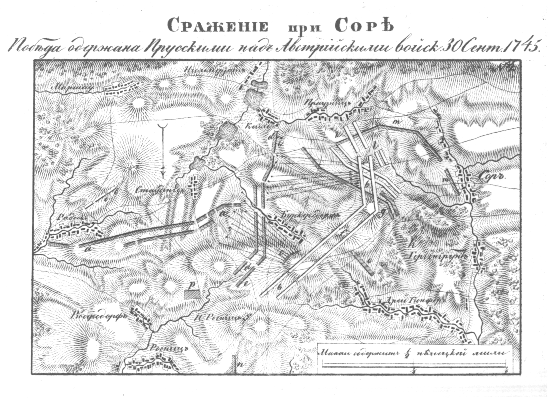 Сражение при Соре. Победа одержана Прусскими над Австрийскими войсками 30 сентября 1745 года