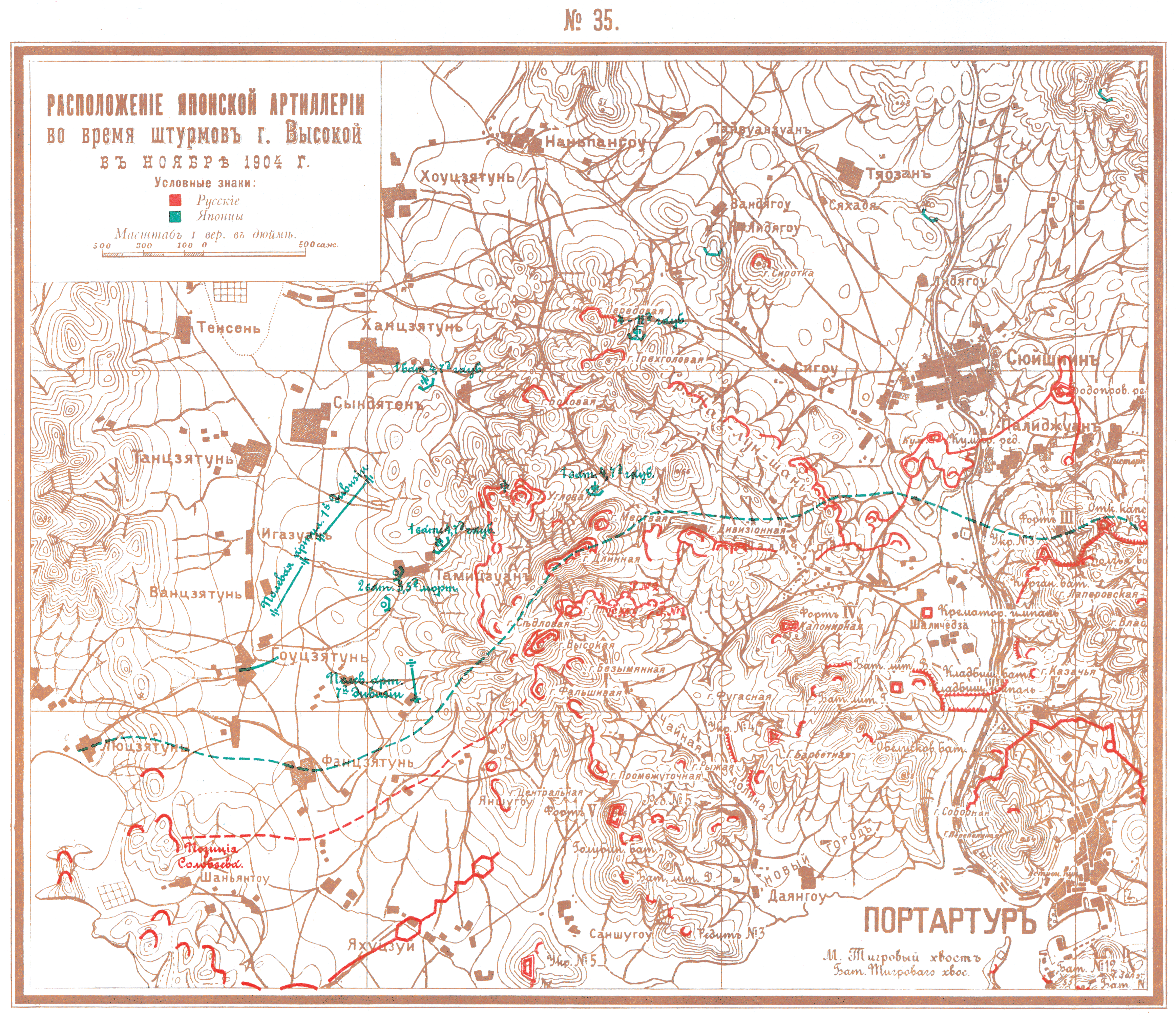 Расположение японской артиллерии во время штурмов горы Высокой в ноябре 1904 года