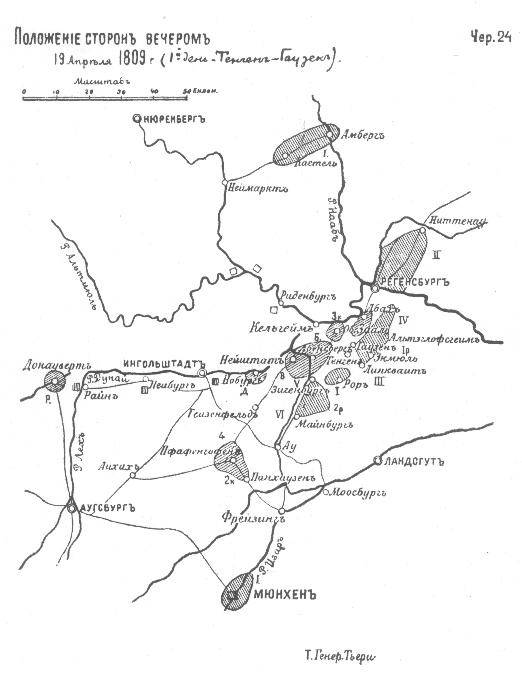 Положение сторон вечером 19 апреля 1809 года (Первый день: Танген-Гаузен)