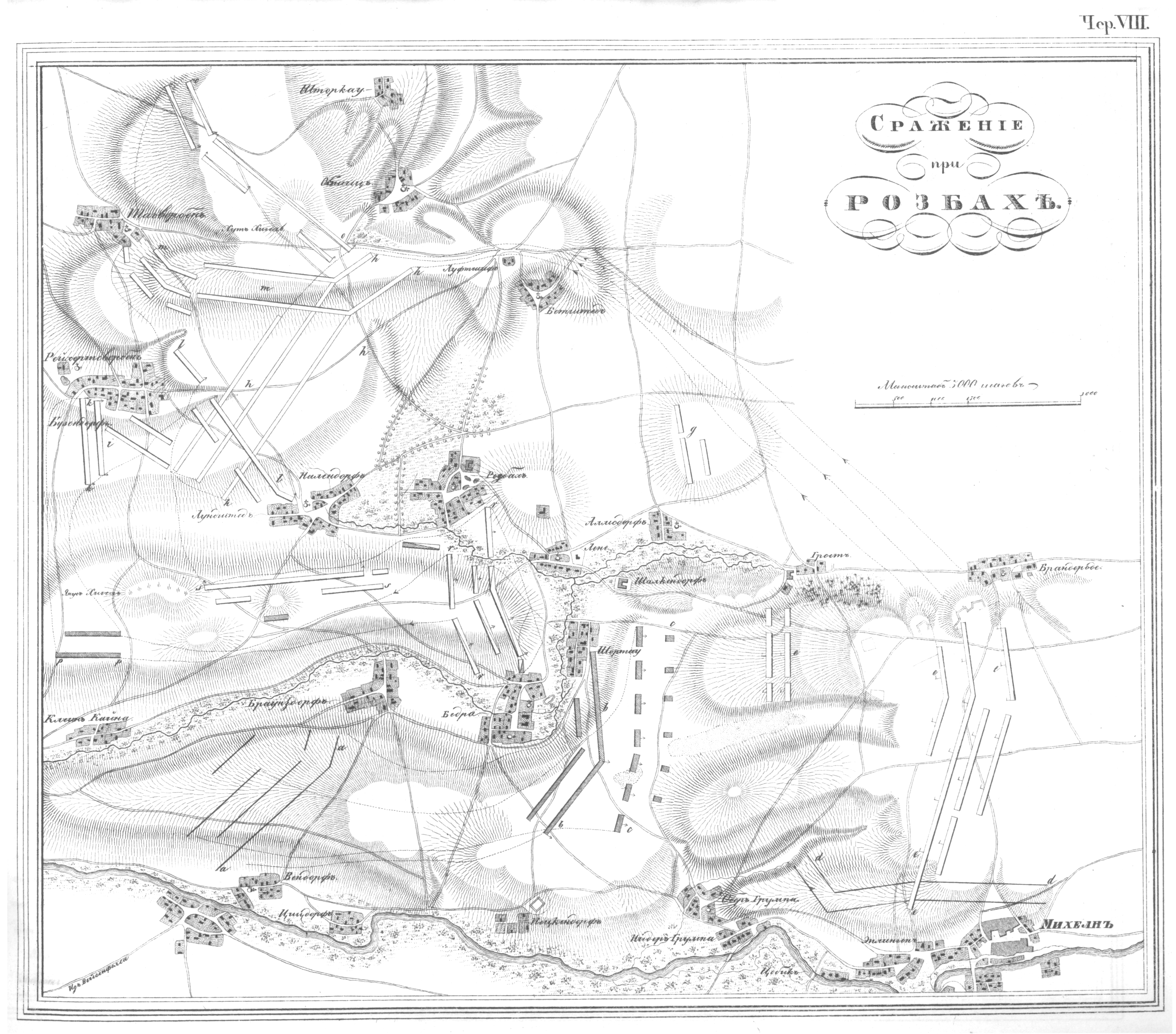 Карта-схема битвы при Фрауштадте, 13 (3) февраля 1706 года