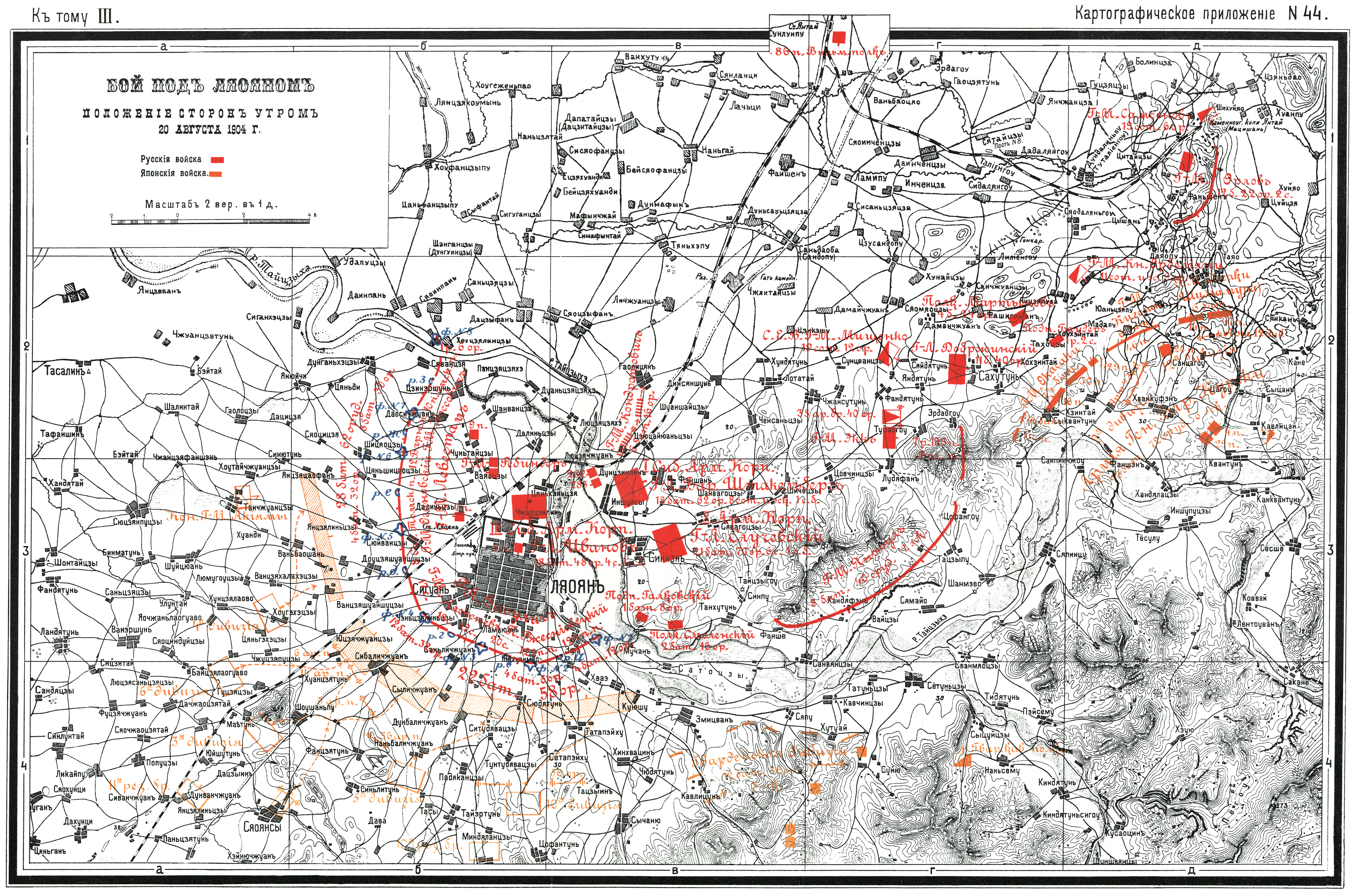 Бой под Ляояном. Положение сторон утром 20 августа 1904 года