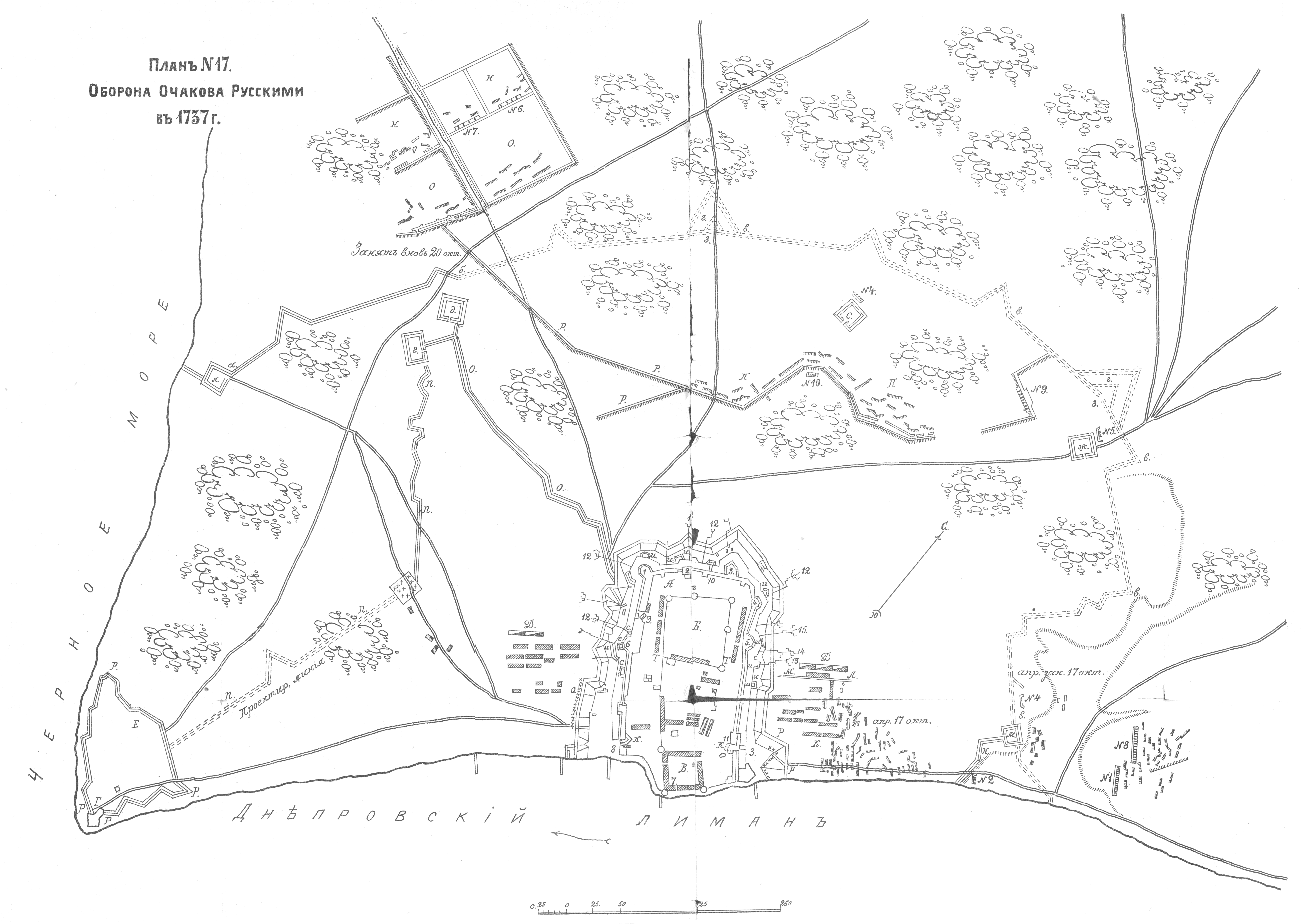 <a href="http://www.runivers.ru/bookreader/book16971/#page/464/mode/1up">Читать подробнее об Обороне Очакова в 1737 году в издании: Байов Алексей Константинович. Русская армия в царствование императрицы Анны Иоанновны. Война России с Турцией в 1736-1739гг. Том I. Первые три года войны.—СПб.,1906.</a>