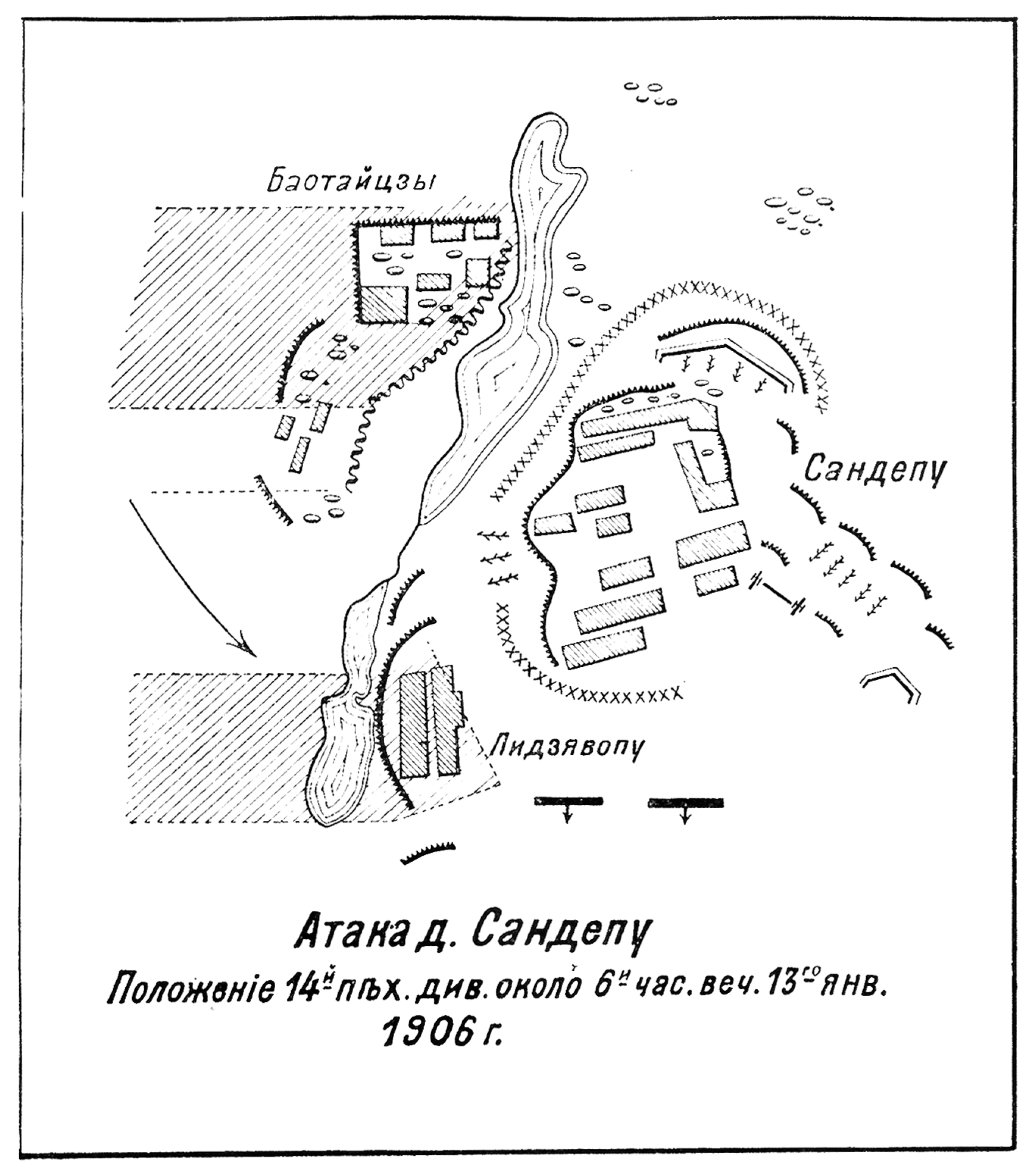 Атака деревни Сандепу. Положение 14-й пехотной дивизии около 5 часов вечера 13 января 1905 года