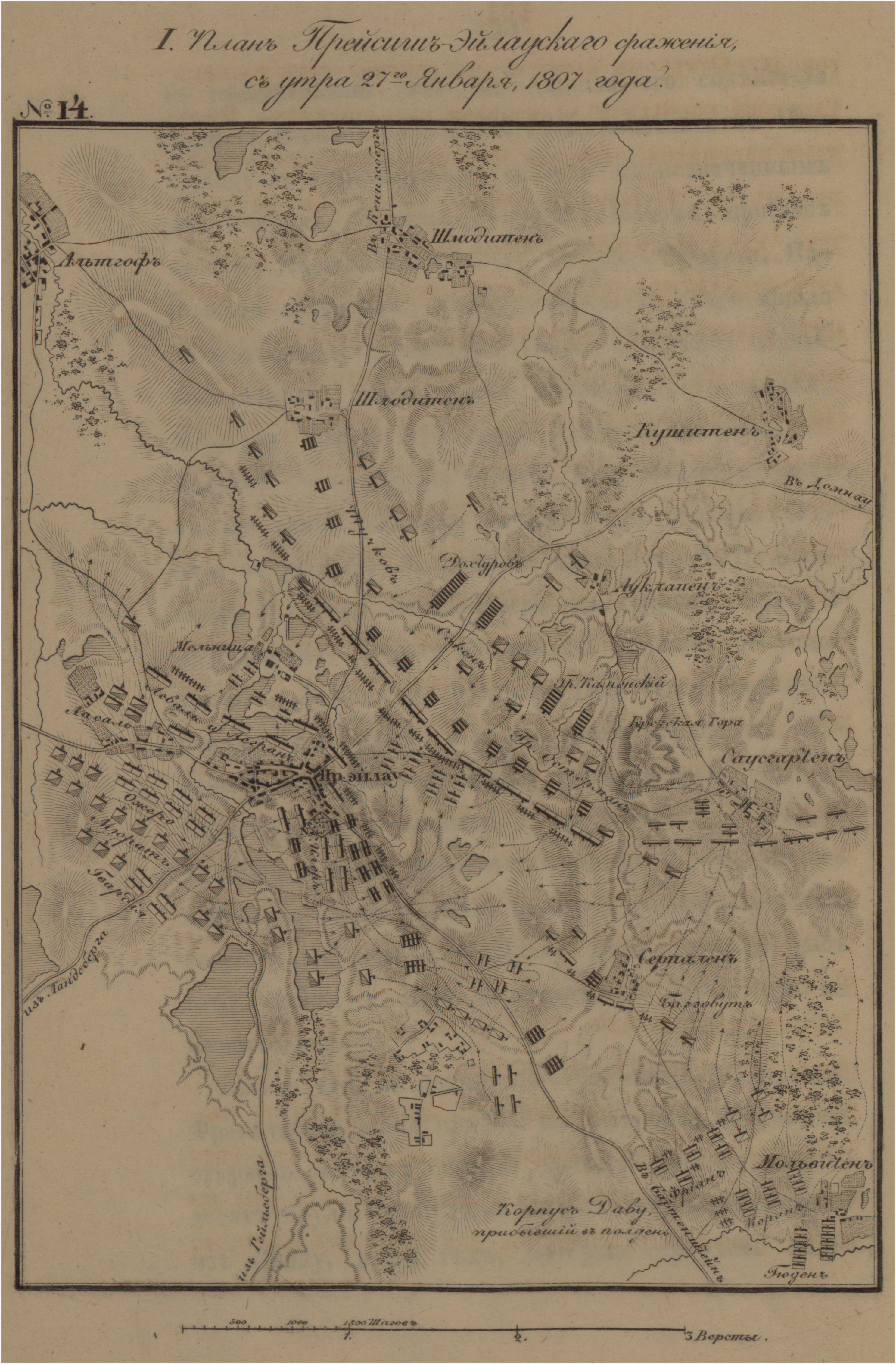 План Прейсиш-Эйлауского сражения с утра 27 января 1807 года